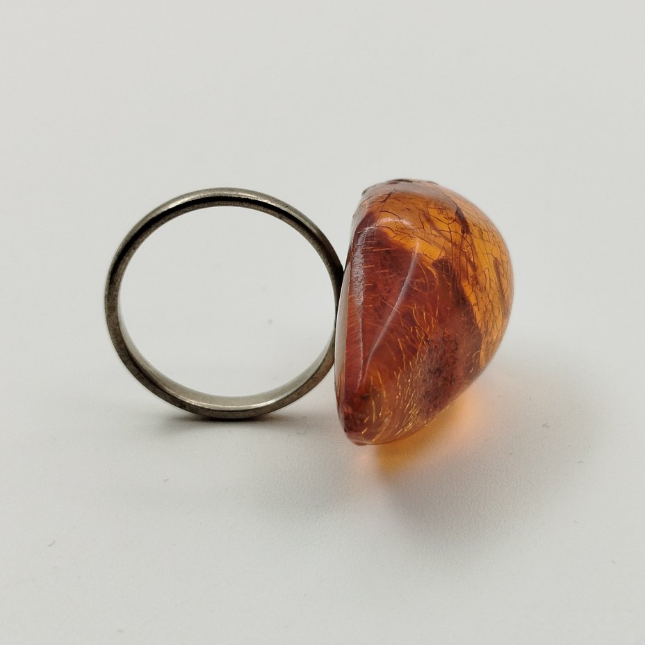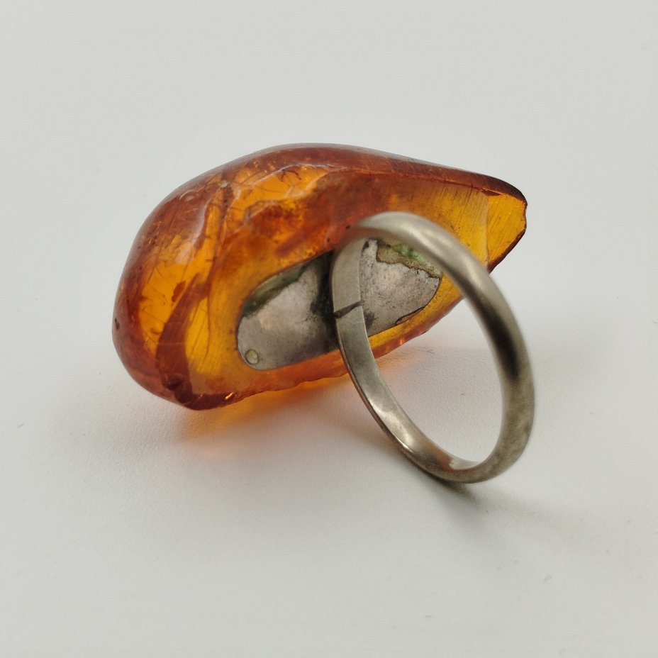 Кольцо, металл, янтарь, СССР, 1980-1990 гг.