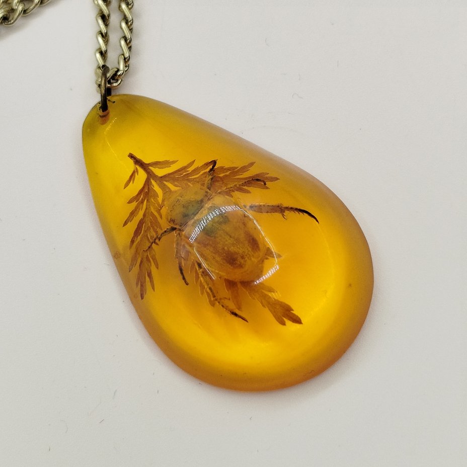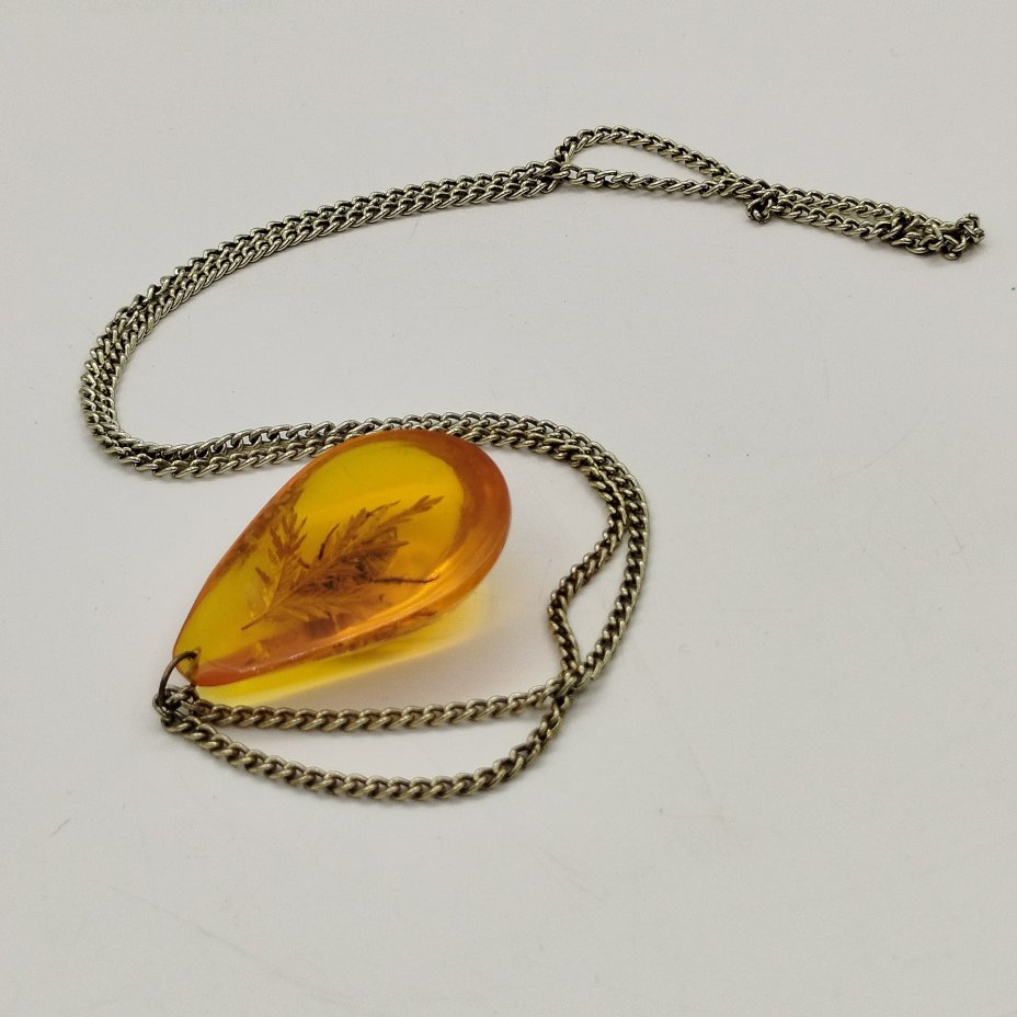 Кулон с подвеской, имитирующий янтарь с включением растения и насекомого, эпоксидная смола, металл, Азия, 2000-2015 гг.