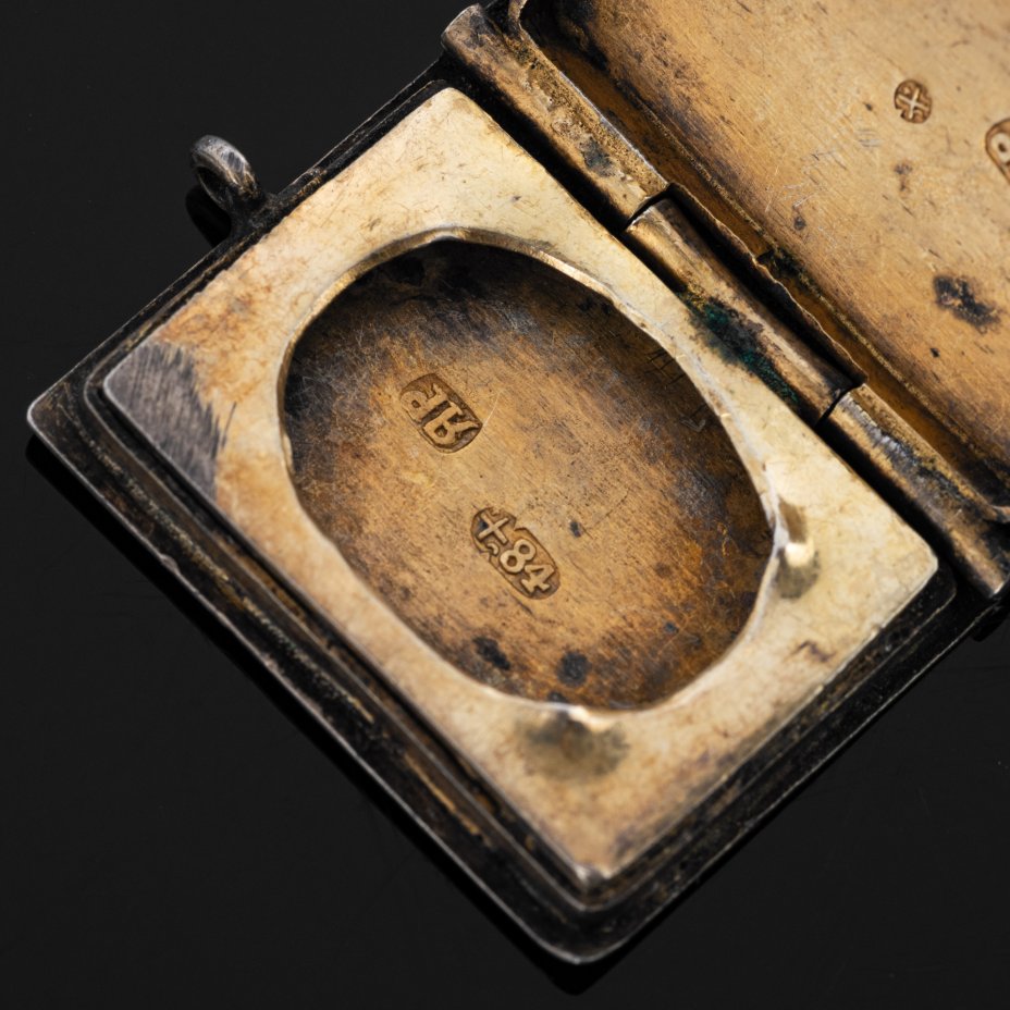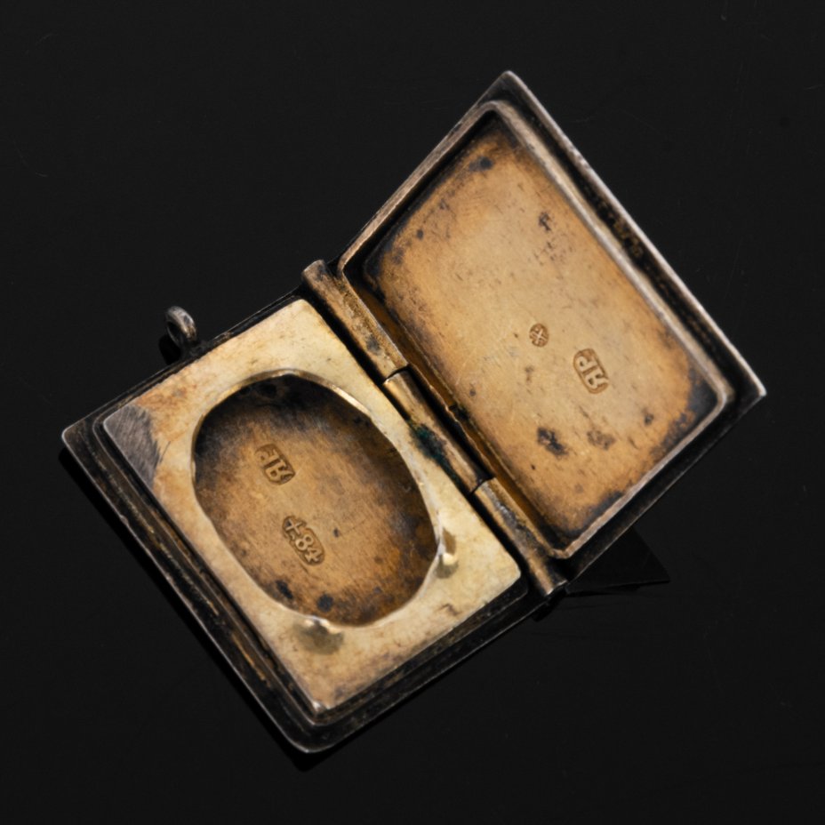 Кулон-локет в форме книжечки с отверстием под фотографию, мастер-монограммист "ЯР", г. Кострома, металл, золочение, Российская империя, 1870-1880 гг.