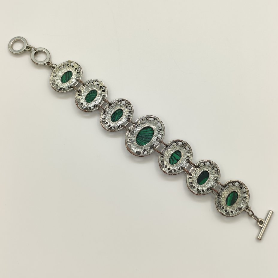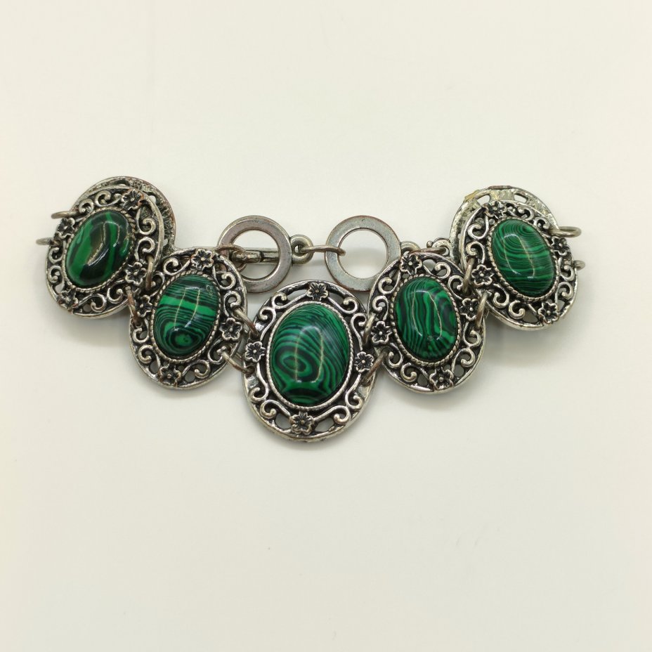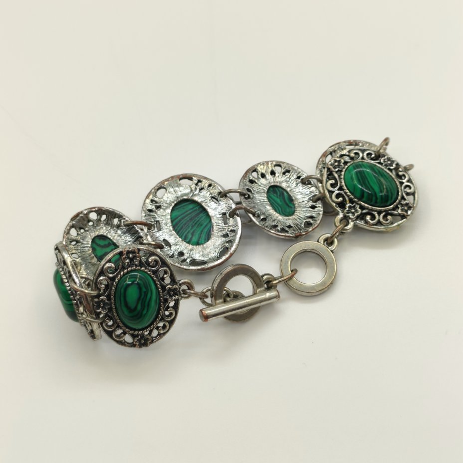 Браслет с овальными вставками зеленого оттенка под малахит, металл, композитный материал, Азия, 1990-2015 гг.