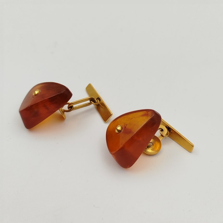 Запонки геометрической формы, янтарь, металл, СССР, 1970-1990 гг.