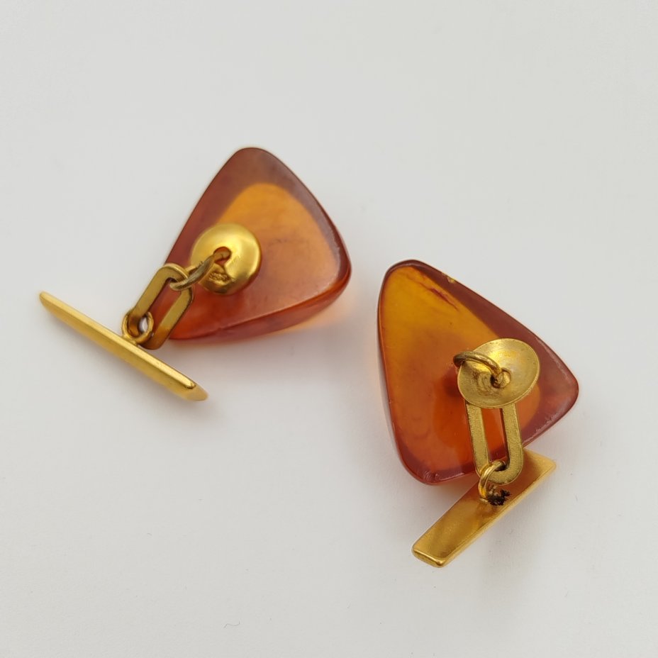 Запонки винтажные со вставками треугольной формы, металл, янтарь, СССР, 1970-1990 гг.