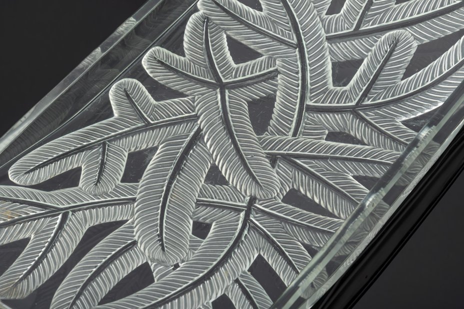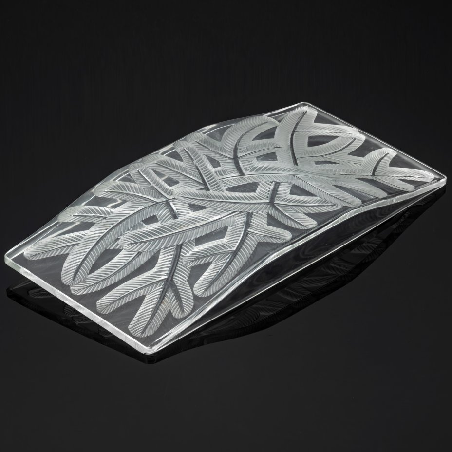 Фруктовница с рельефным матовым декором в виде еловых веток, Verlys (?), стекло, инталия, матирование, Франция, 1920-1930 гг.