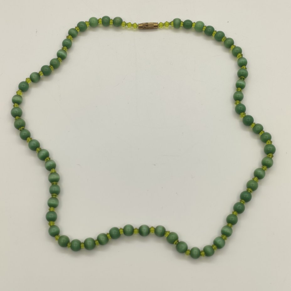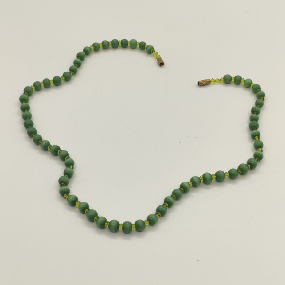 Бусы с бусинами зелёного оттенка, композитный материал, сплав металлов, СССР, 1970-1990 гг.