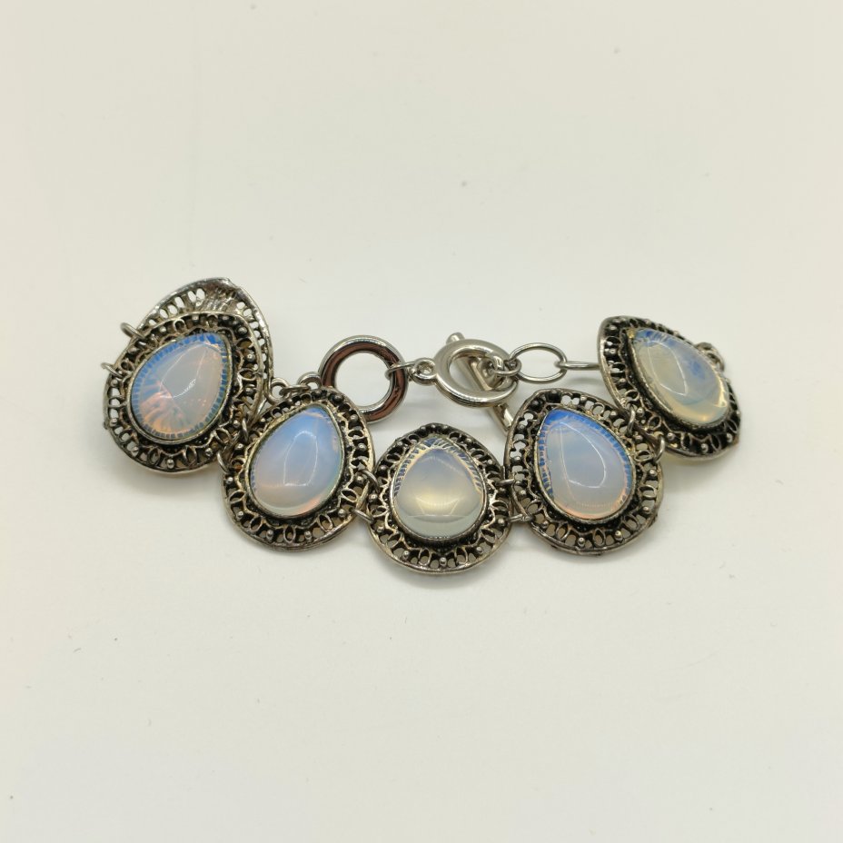Браслет с каплевидными вставками светло-голубого оттенка под лунный камень, металл, композитный материал, Азия, 1990-2015 гг.