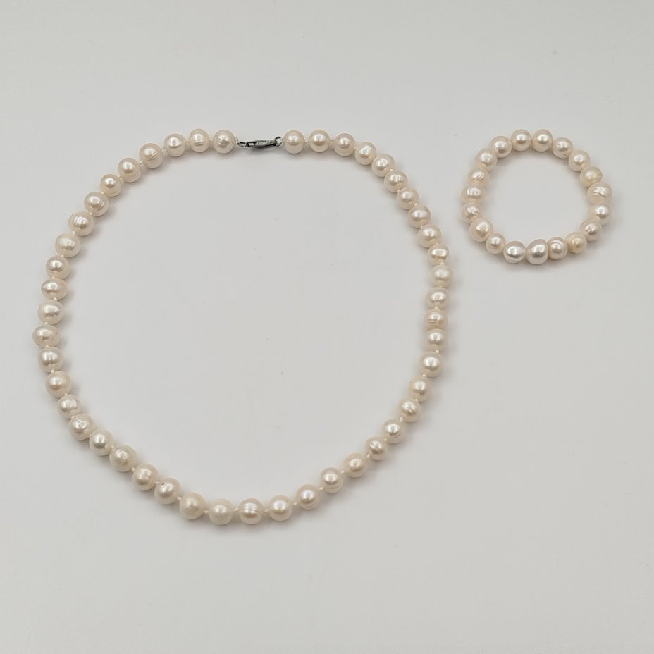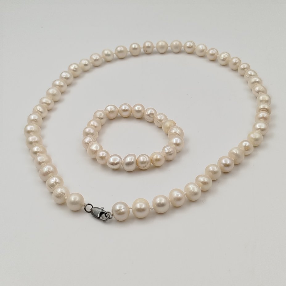 Набор винтажных украшений из крупного натурального жемчуга: бусы и браслет, жемчуг, сплав металлов, Российская Федерация, 1990-2000 гг.