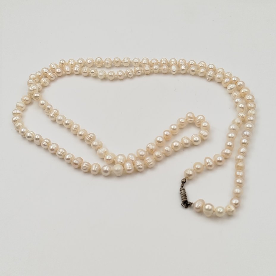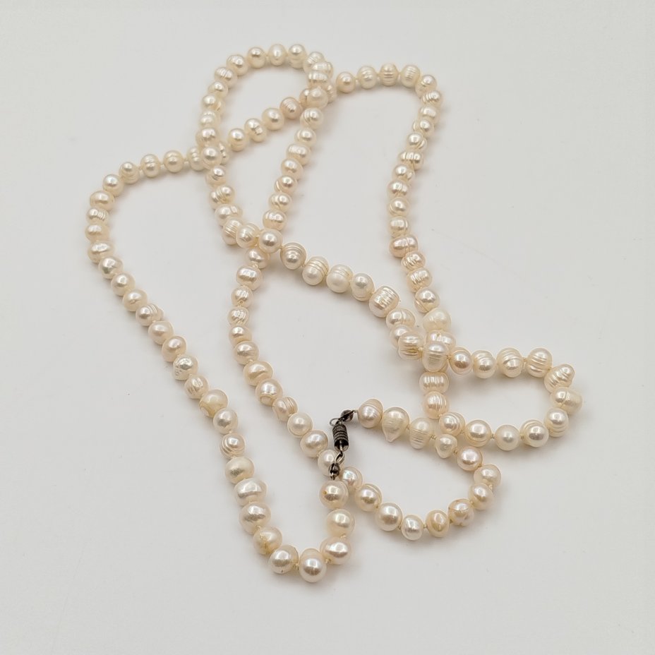 Бусы винтажные (длина - 132 см.) из крупных бусин различной формы ("барочный жемчуг"), металл, натуральный жемчуг, Азия, 1970-2000 гг.