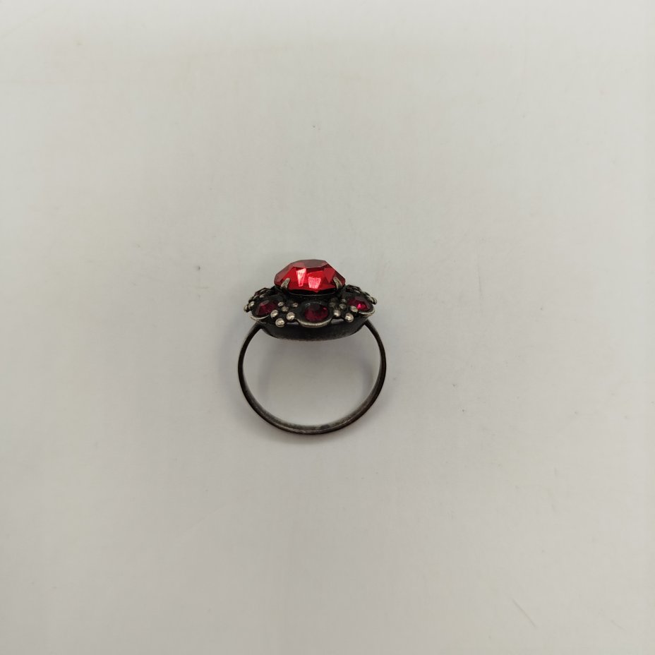 Кольцо с красной вставкой, мельхиор (медь-никель), стекло, Европа, 1990-2000 гг.