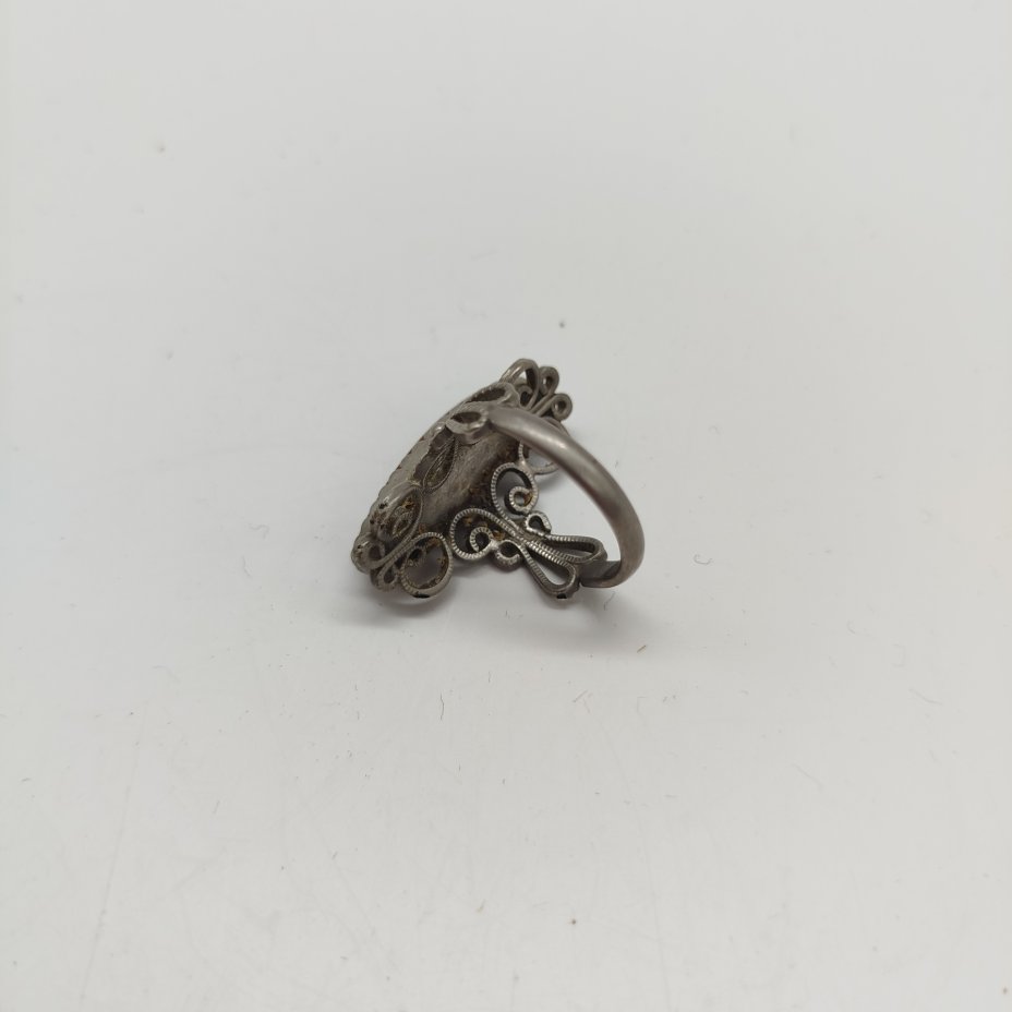 Кольцо/перстень овальной формы, мельхиор (медь-никель), перламутр, скань, СССР, 1970-1990 гг.