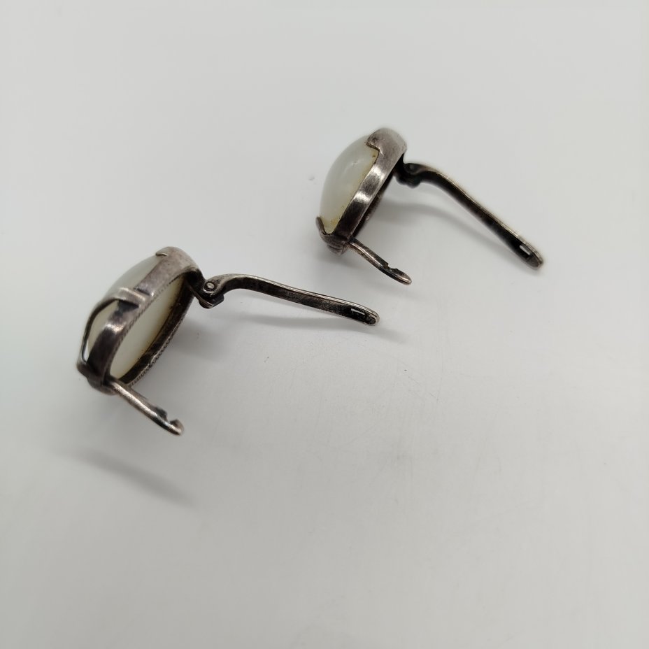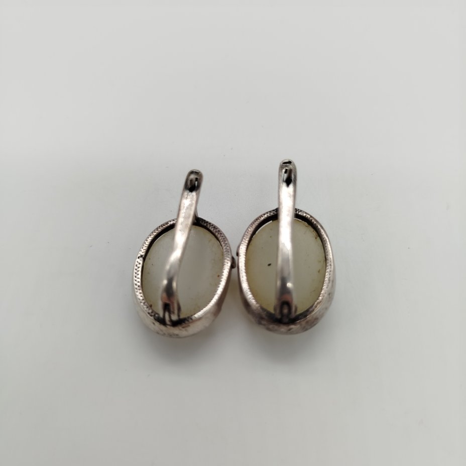 Серьги овальной формы, мельхиор (медь-никель), камень, 1970-1990 гг.