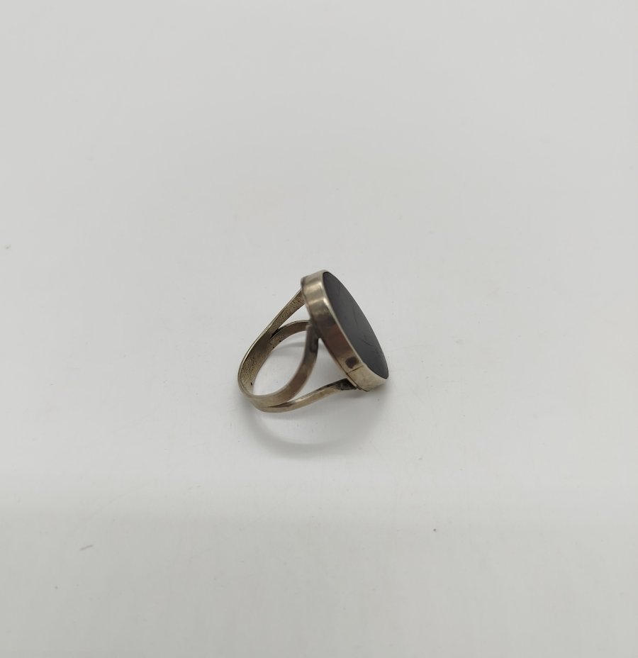 Кольцо/перстень овальной формы с черной вставкой, мельхиор (медь-никель), СССР, 1980-2000 гг.