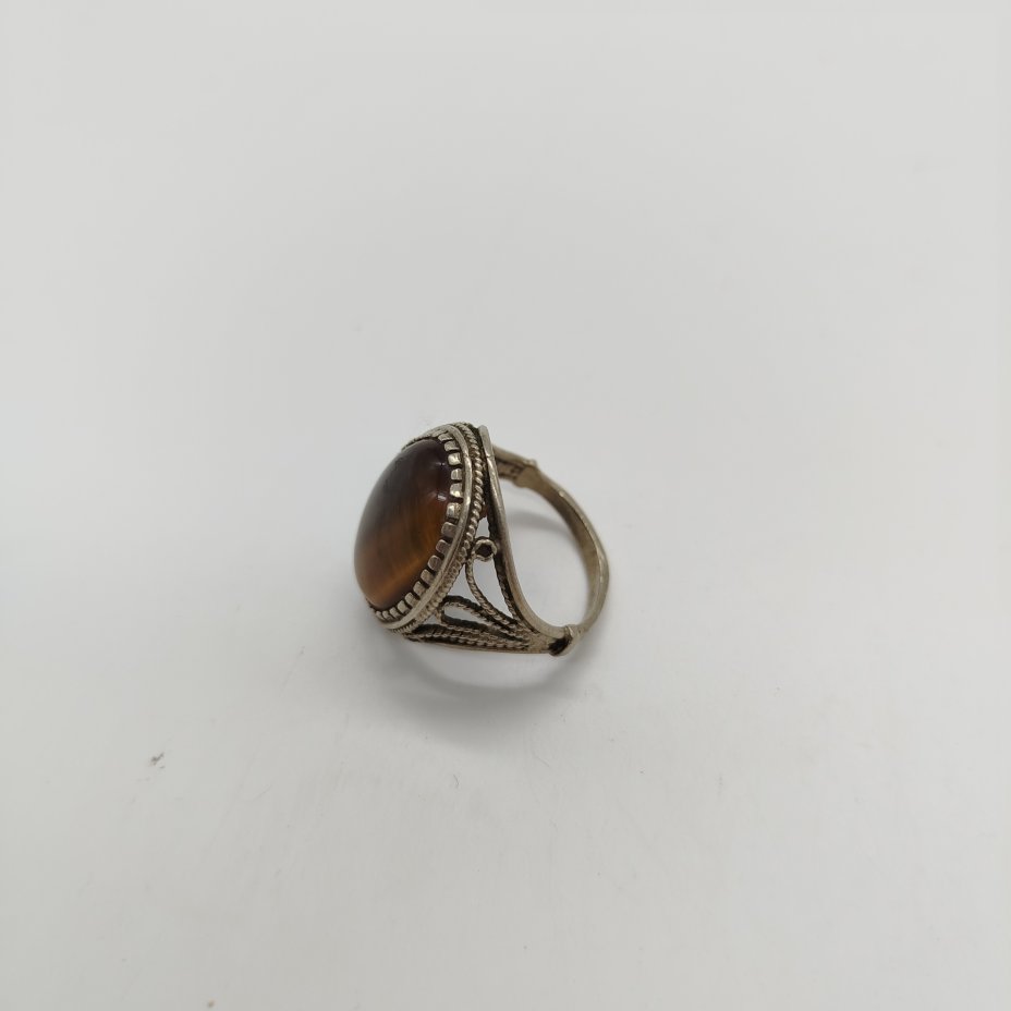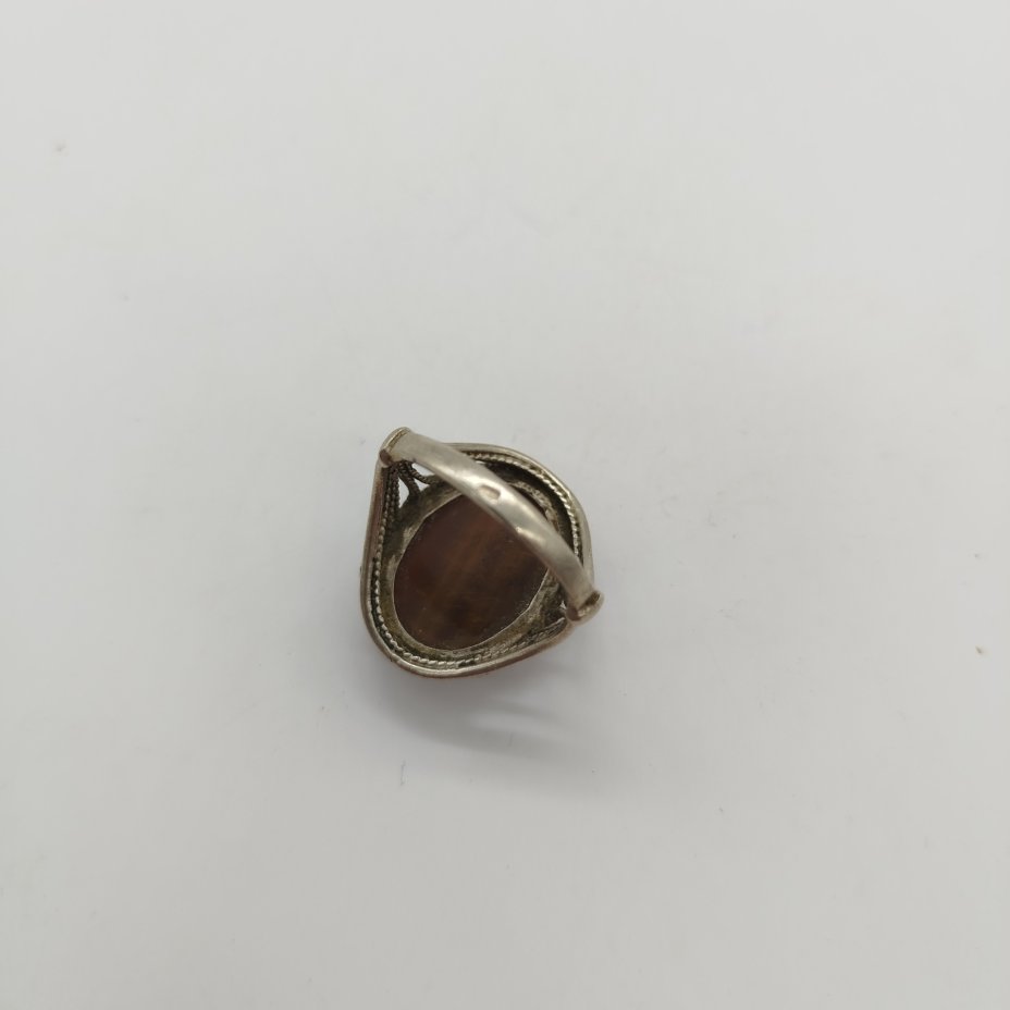 Кольцо/перстень в технике скань, мельхиор (медь-никель), тигровый глаз, СССР, 1970-1980 гг.