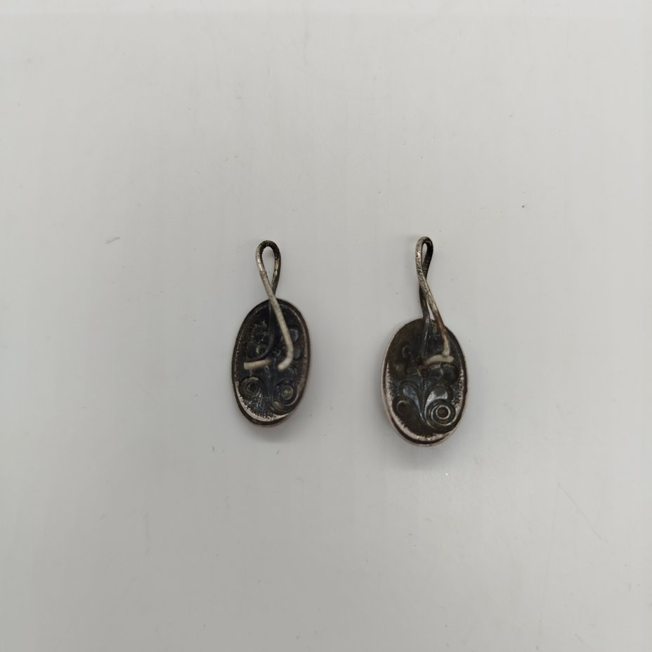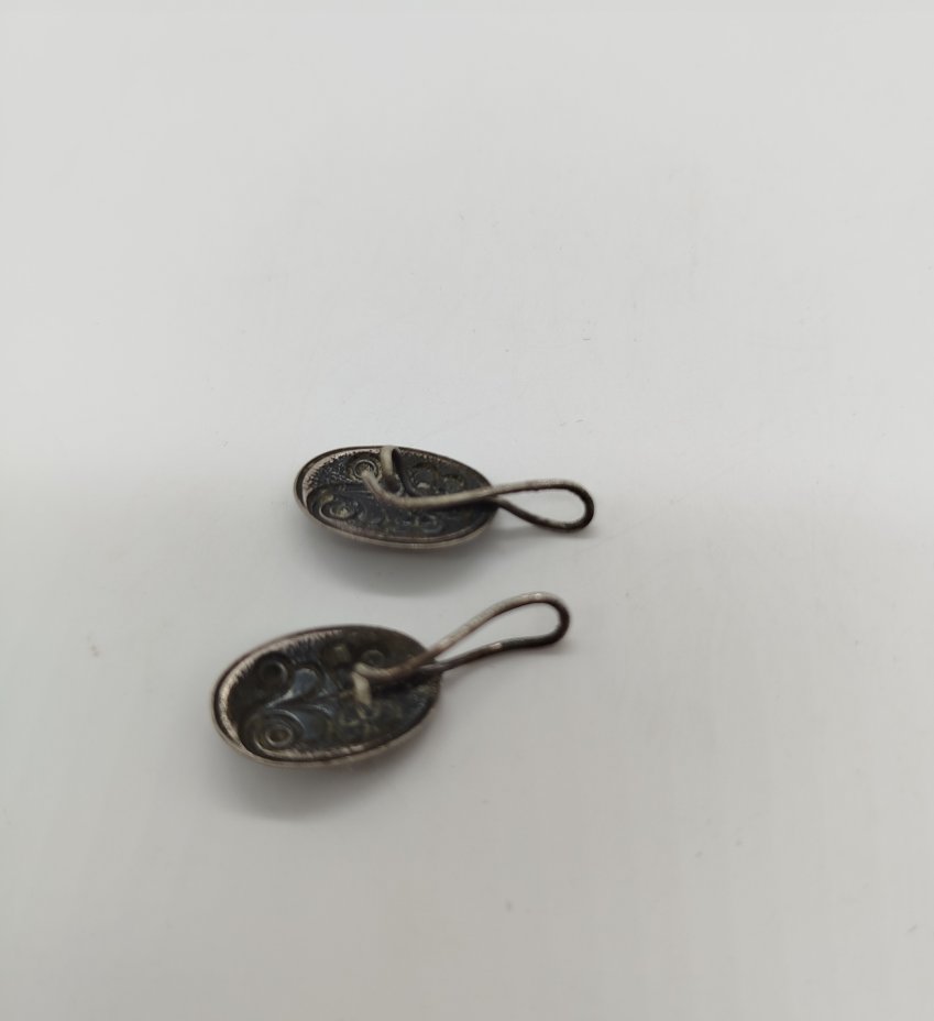 Серьги овальной формы с цветочным декором, мельхиор (медь-никель), чернение, СССР, 1970-1990 гг.
