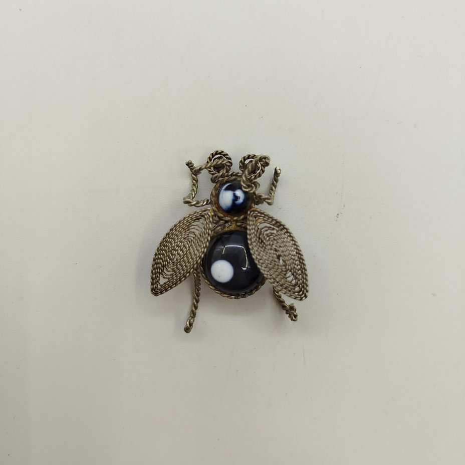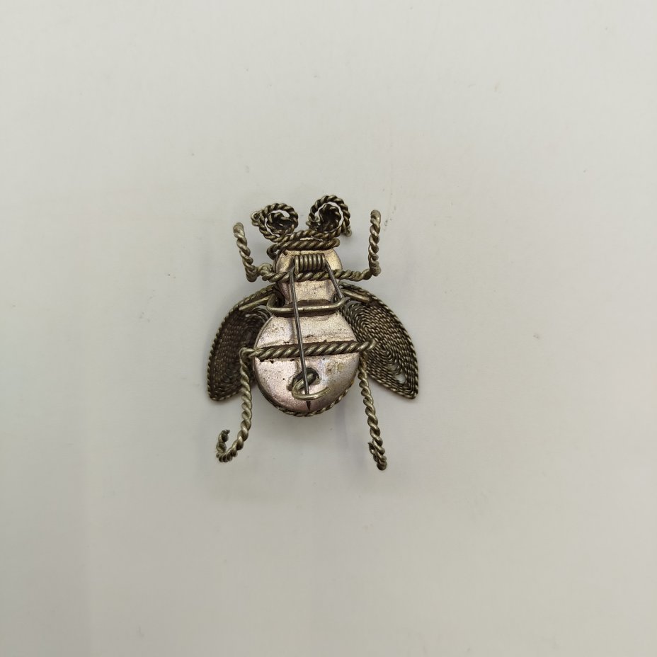 Брошь "Муха", мельхиор (медь-никель), стекло, скань, СССР, 1970-1990 гг.