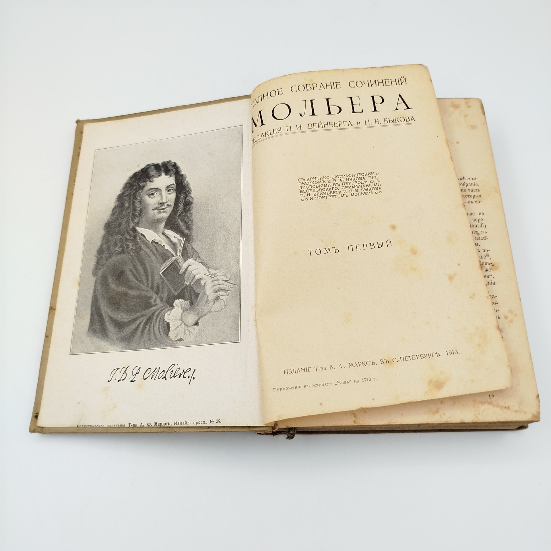 Книга "Полное собрание сочинений Мольера", том 1, бумага, печать, кожаный корешок, Издательство «Товарищество А.Ф. Маркс», Российская империя, 1913 г.