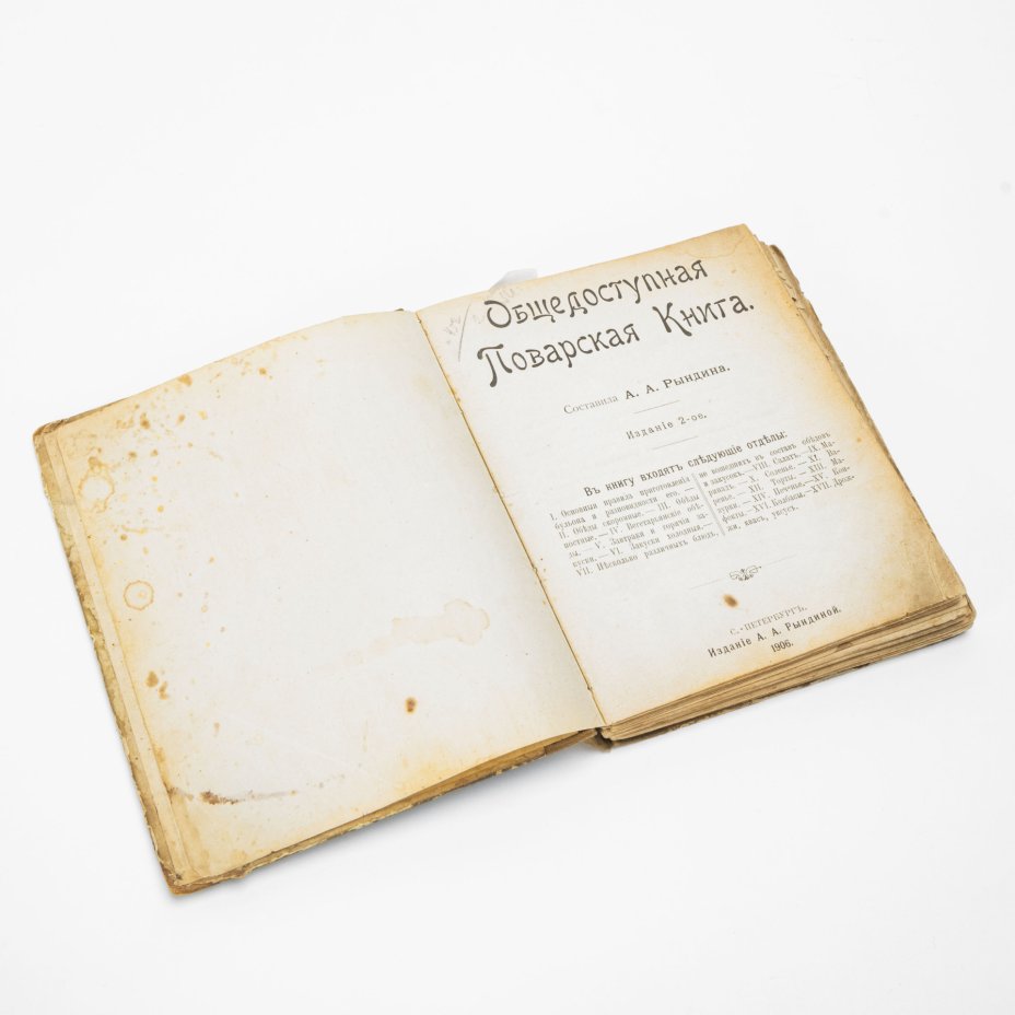 Рындина А.А. "Общедоступная поварская книга", издание 2-е, бумага, печать, издание А.А. Рындиной, типография Ц. Крайз, Российская империя, 1906 г.