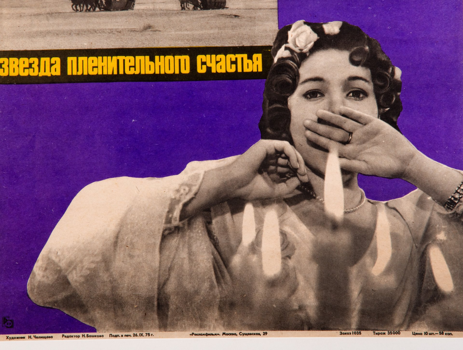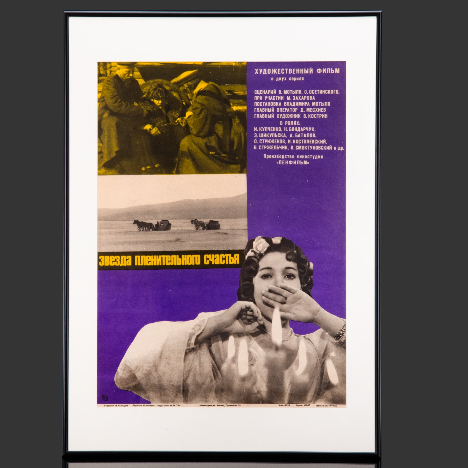 Афиша, кинореклама к показу фильма "Белые росы" в раме, реж. И. Добролюбов, худ. В.Щербаков, бумага, печать, алюминий, пластик, Издательство «Рекламфильм», СССР, 1984 г.