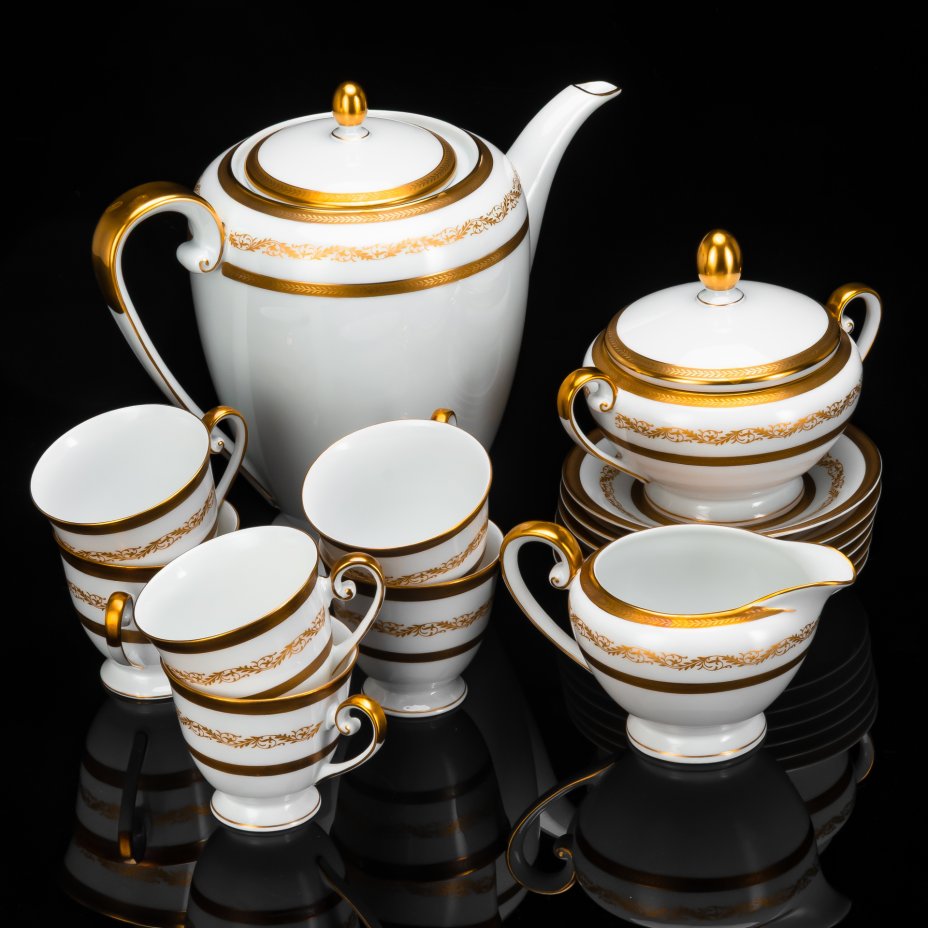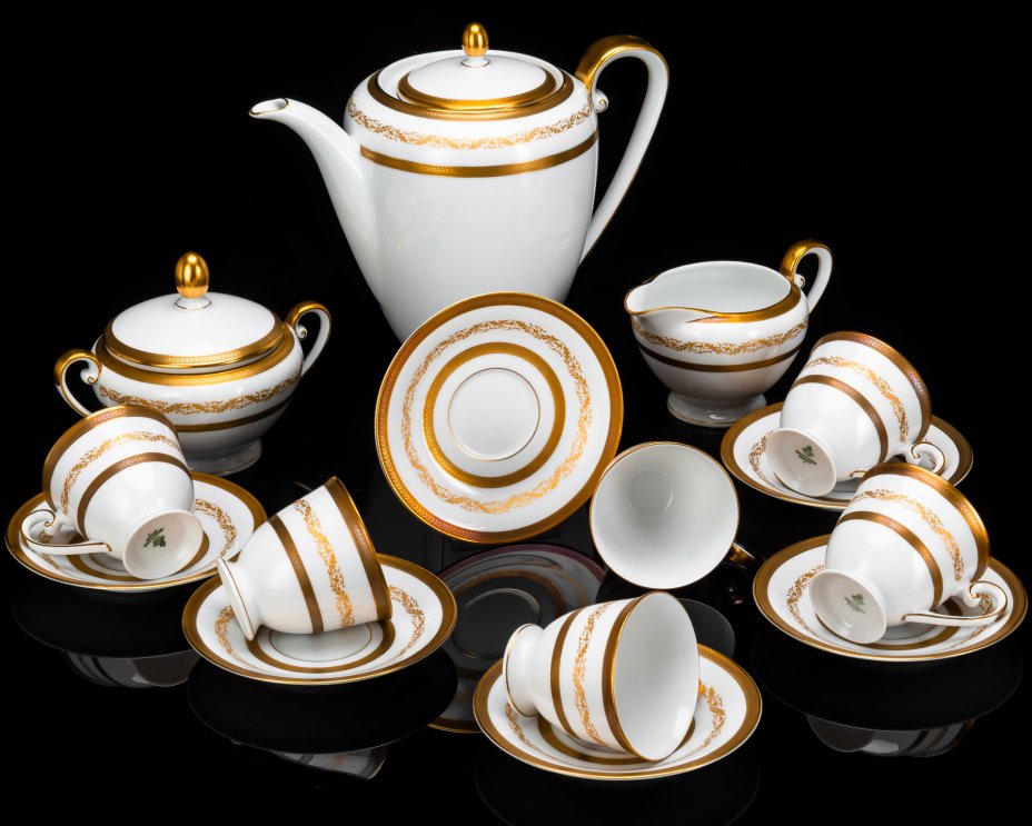 Сервиз кофейный с растительным декором на 6 персон, серия "Charleroi-Bruxelles", фарфор, золочение, Tirschenreuth, Германия, 1969-1990 гг.