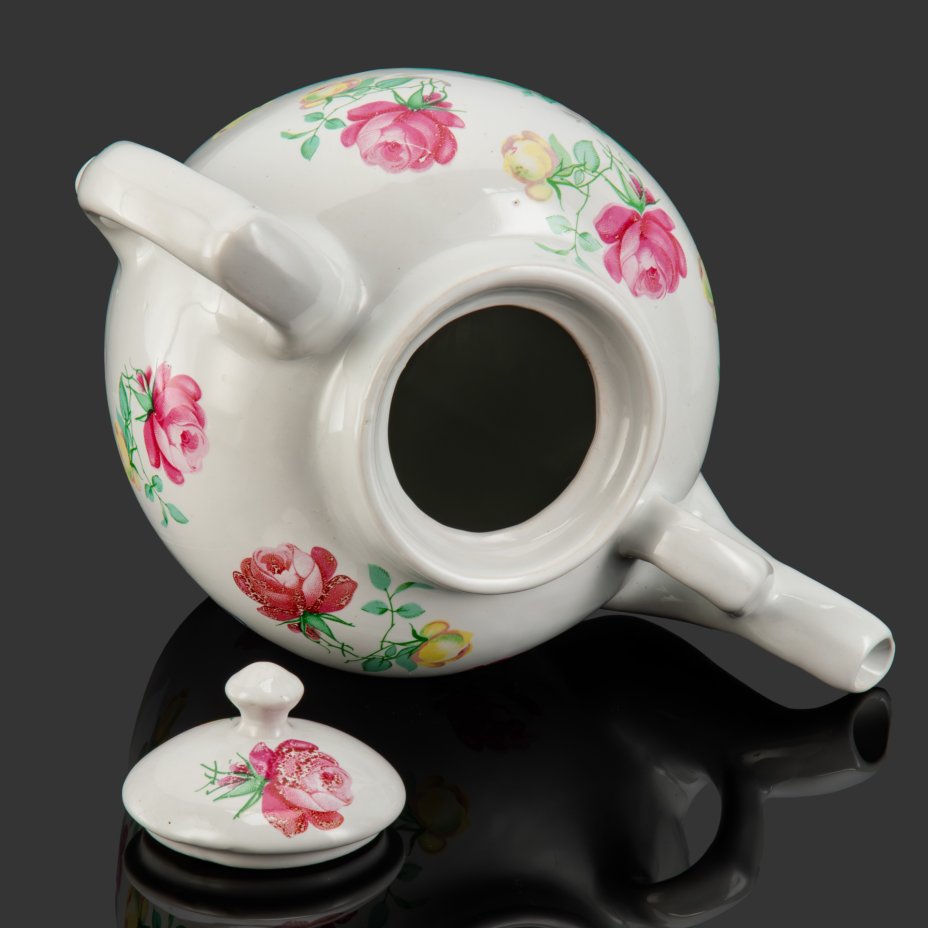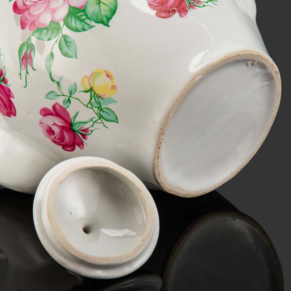 Чайник доливной "55 лет" с флоральным декором, фарфор, деколь, СССР, 1980-1990 гг.