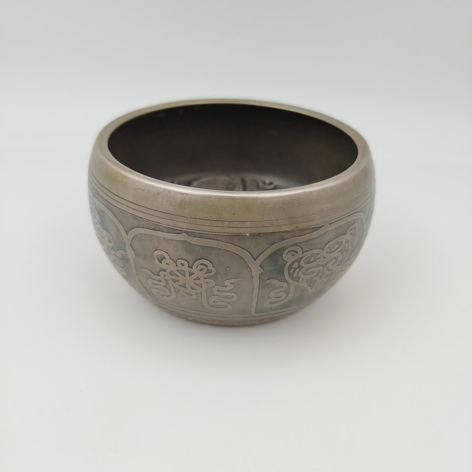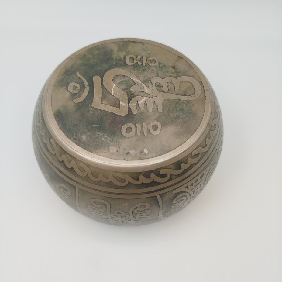 Чаша для медитаций с рельефным изображением Будды и мантрой "ом мани падме хум", металл, Азия, 1980-1990 гг.