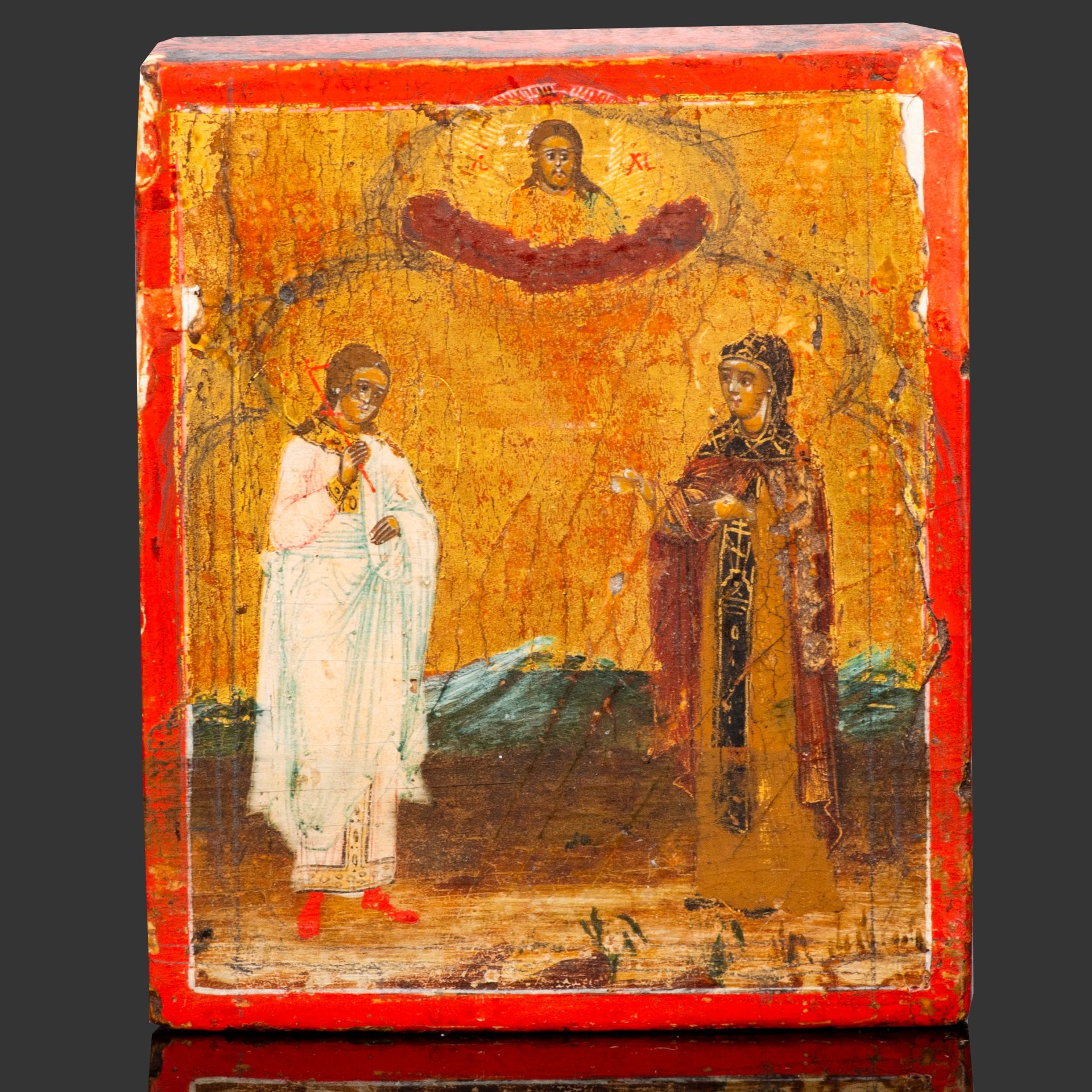 Купить Икона "Святой Николай Чудотворец с предстоящим священномучеником Антипом", (доска с ковчегом), дерево, темпера, Российская империя, 1850-1910 гг.