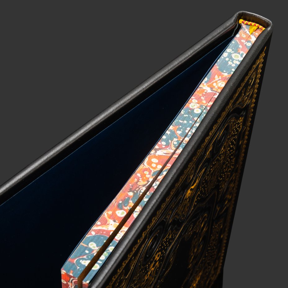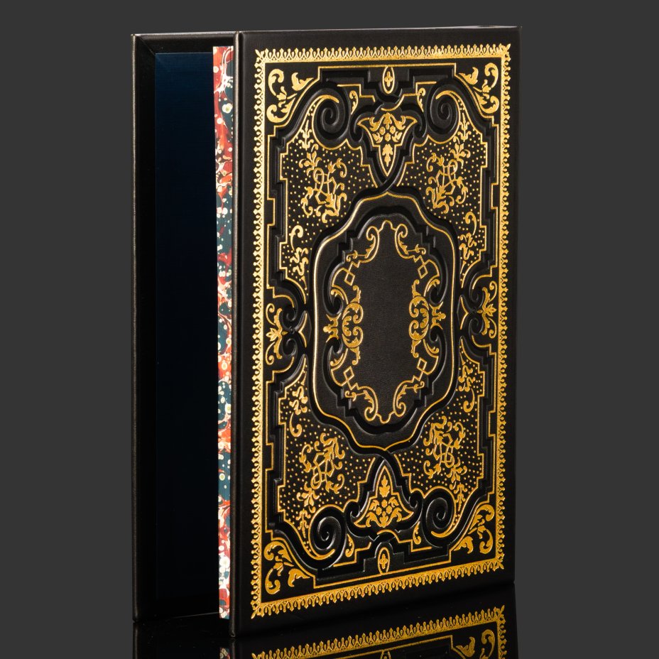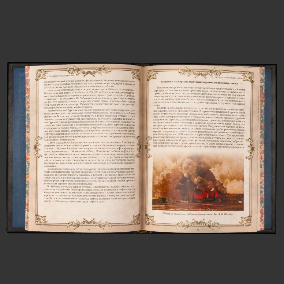 Книга в кожаном переплете "История российской нефти", бумага, кожаный переплет, тиснение, золочение, художественная накладка, обрез с принтом, Российская Федерация, 2025 г.