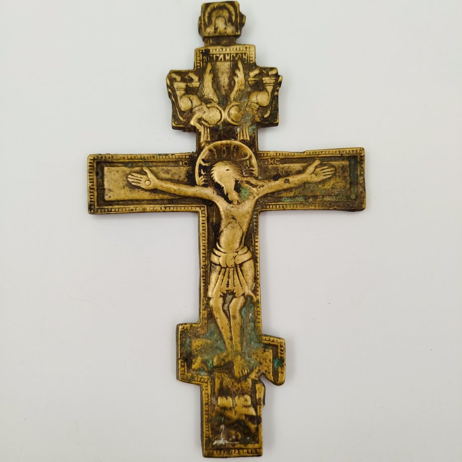 Крест киотный малый "Распятие Христово" с херувимами, медный сплав, литьё, Российская империя, 1850-1900 гг.