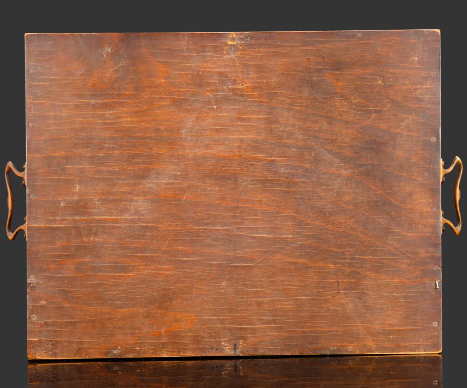 Поднос в стиле прованс, декорированный ручной вышивкой с изображением петухов, дерево, вышивка, пластик, металл, Европа, 1950-1960 гг.