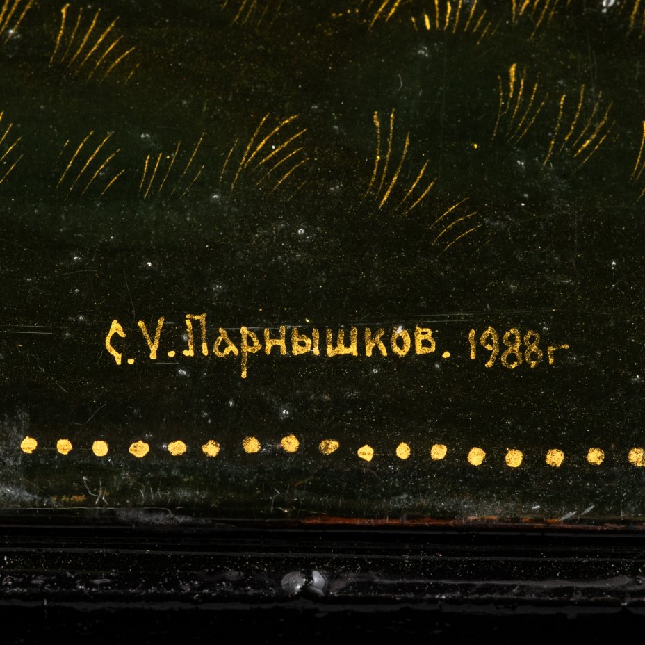 Пресс-папье "Жницы", художник С.У. Парнышков, папье-маше, роспись, золочение, лак, Палех, СССР, 1988 г.