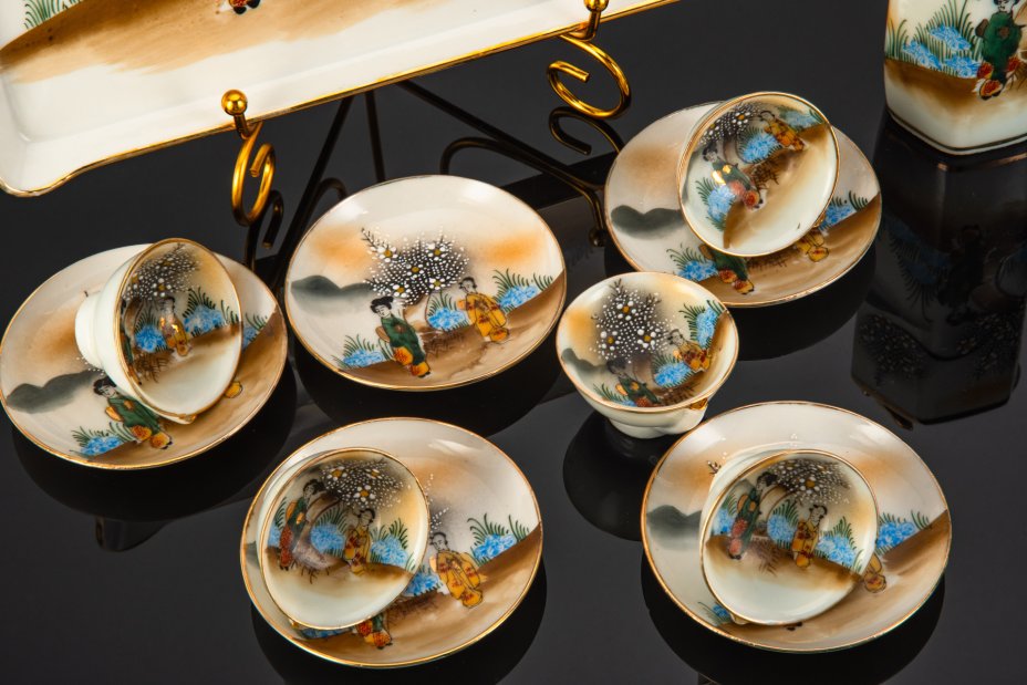 - Материал: Фарфор, роспись, золочение, техника мориаж (Moriage)