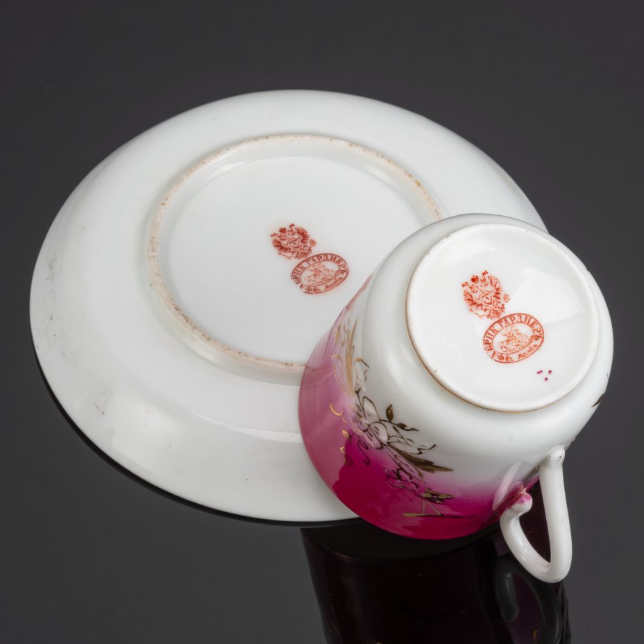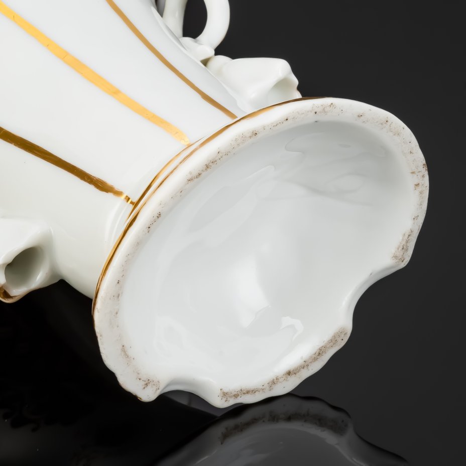 - Материал: Фарфор, крытье, золочение, деколь с подрисовкой