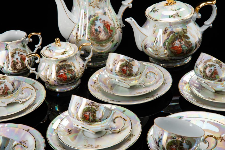 - Материал: Фарфор, деколь, подрисовка, обводка, золочение