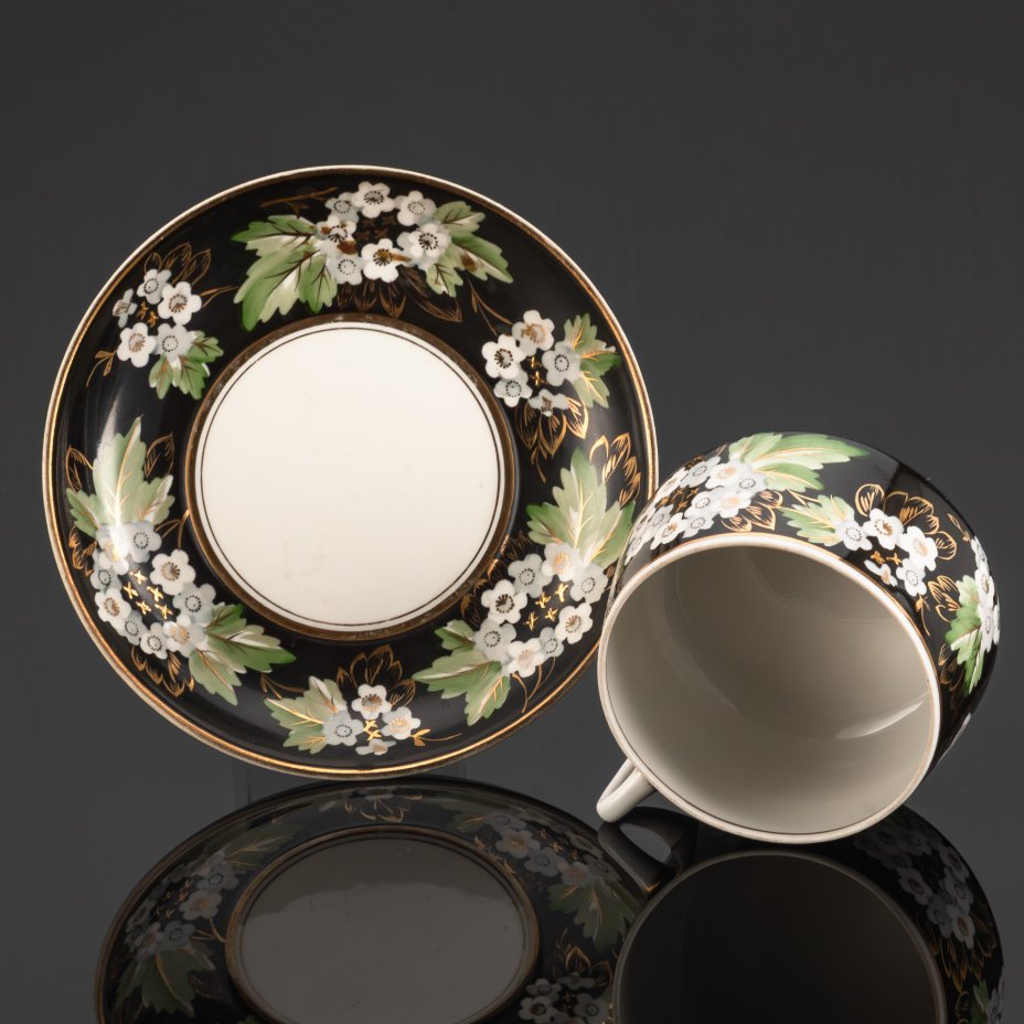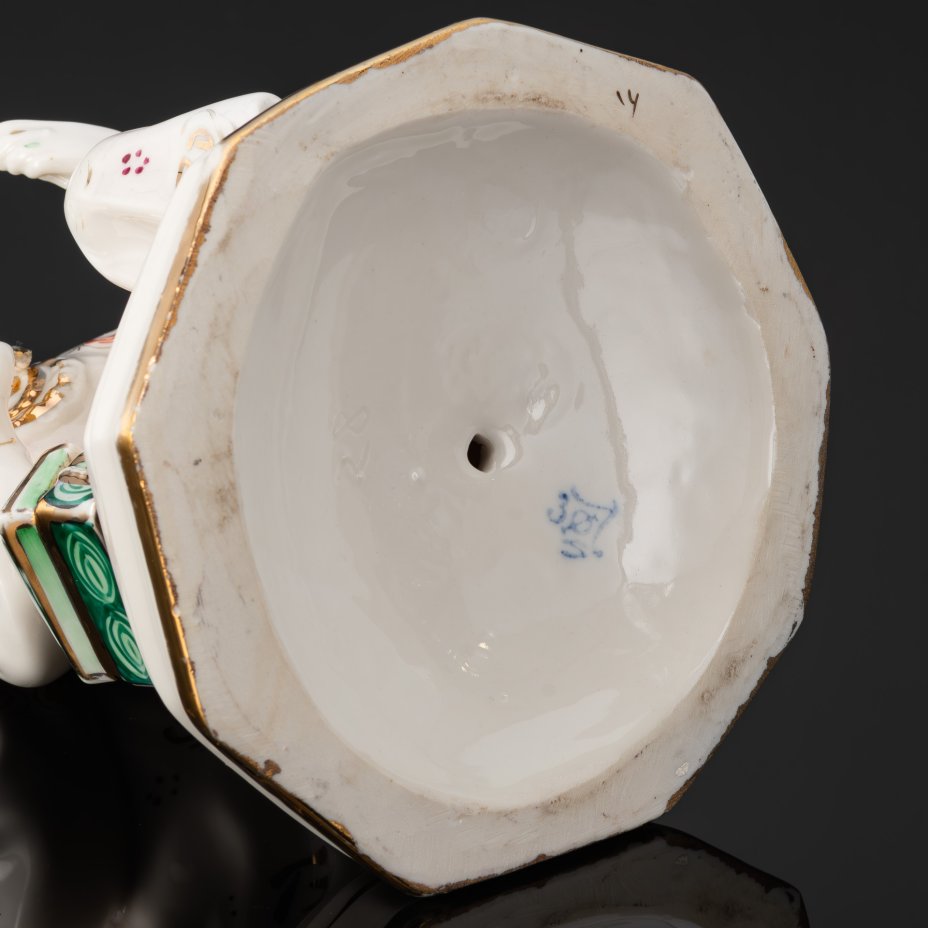 - Материал: Фарфор, крытье, золочение, деколь с подрисовкой
