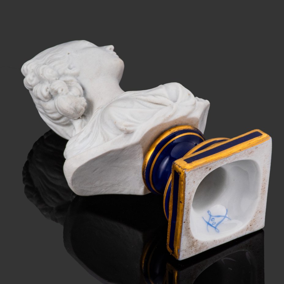 - Материал: Бисквит, фарфор, крытье кобальтом, золочение