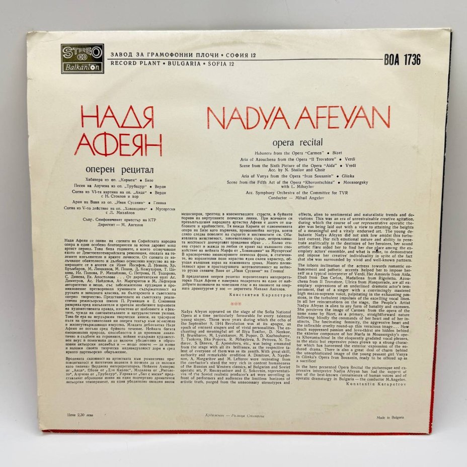 Грампластинка "Надя Афеян – Оперен рецитал ", LP, EX (exellent), Балкантон, композитный материал, картон, СССР, 1975 г.