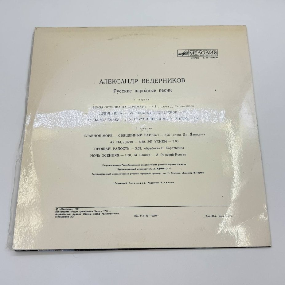 Грампластинка "Александр Ведерников - Русские народные песни", LP, EX (excellent), композитный материал, картон, Всесоюзная фирма грампластинок «Мелодия», СССР, 1981 г.