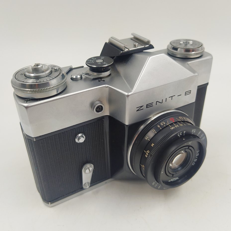 Фотоаппарат "Зенит-В" с объективом "Индустар-50" в оригинальном кофре, металл, пластик, кожа, стекло, Красногорский механический завод (КМЗ), СССР, 1968-1978 гг.