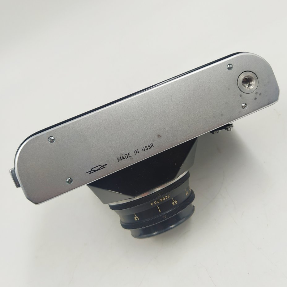 Фотоаппарат "Зенит-В" с объективом "Индустар-50" в оригинальном кофре, металл, пластик, кожа, стекло, Красногорский механический завод (КМЗ), СССР, 1973 г.