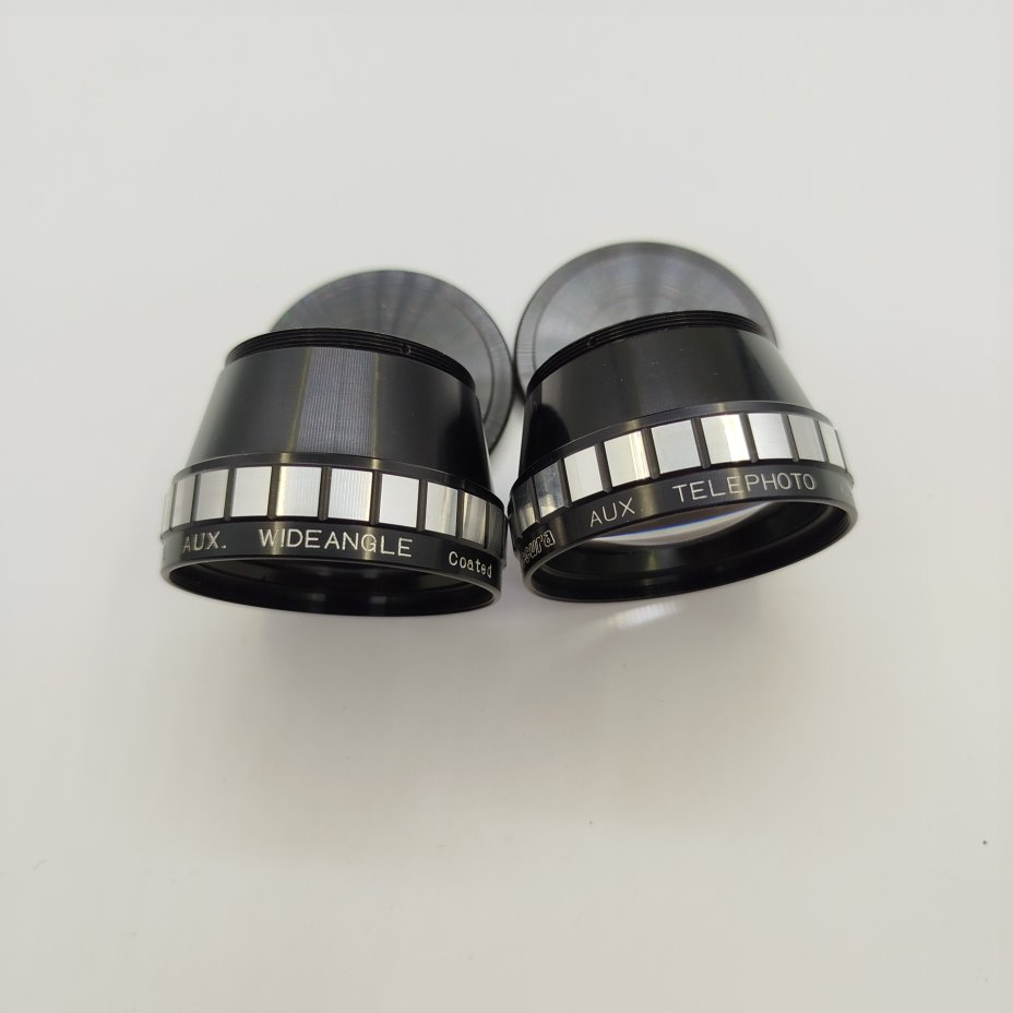 Набор из двух объективов Accura (широкоугольный и телеобъектив) в родной упаковке, металл, кожа, стекло, Япония, 1980-2000 гг.