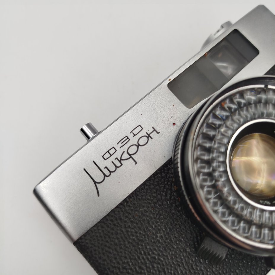 Фотоаппарат "Микрон", с оригинальным чехлом, коробкой и документами, металл, пластик, стекло, картон, бумага, печать, Харьковский машиностроительный завод им. Дзержинского (ФЭД), СССР, 1975 г.