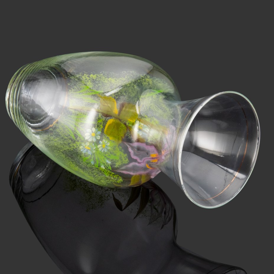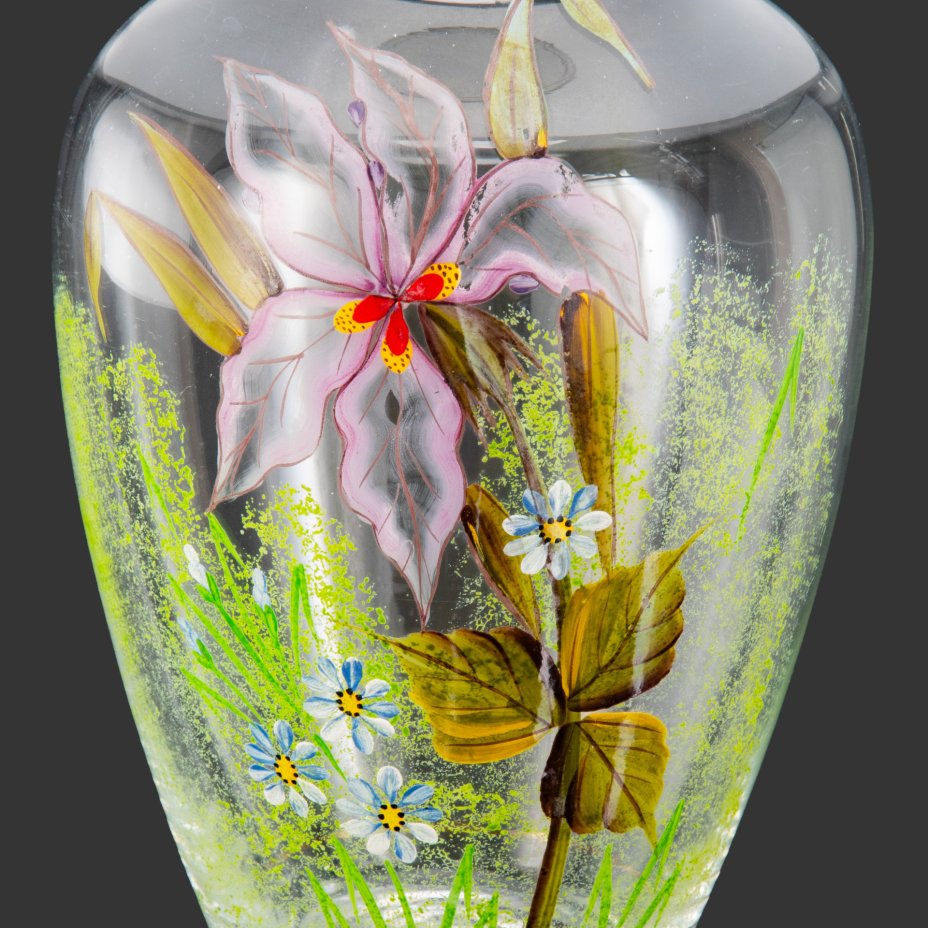 Ваза для цветов, украшенная нежным цветочным декором, стекло, золочение, роспись, Европа, 1950-1970 гг.
