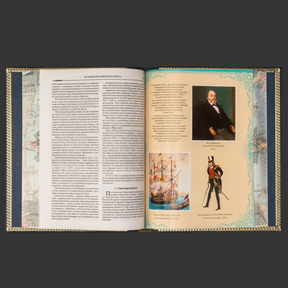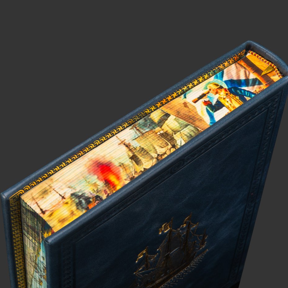 Книга в кожаном переплете "История Российского флота", бумага, кожаный переплет, тиснение, золочение, художественная накладка, обрез с принтом, Российская Федерация, 2025 г.
