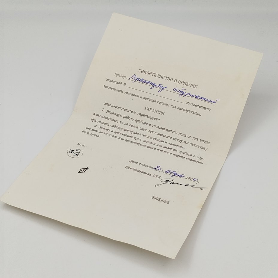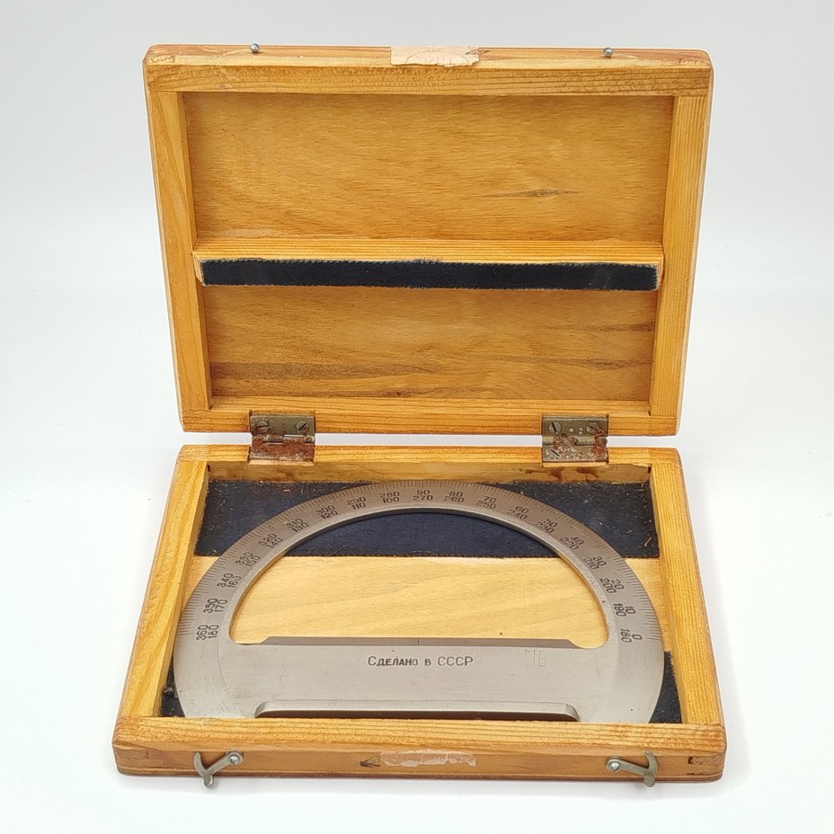 Транспортир штурманский в оригинальном футляре со свидетельством о приемке, металл, дерево, СССР, 1974 г.