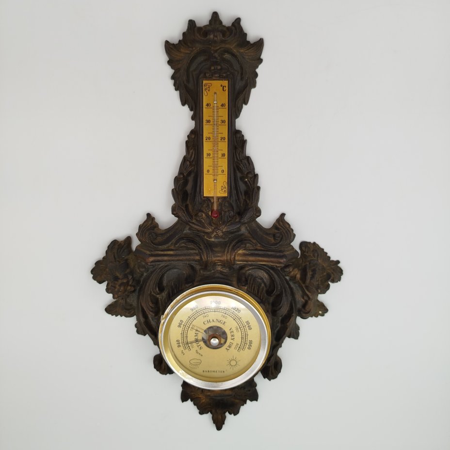 Барометр настенный с резным декором, композитный материал, стекло, металл, Европа, 1970-1990 гг.
