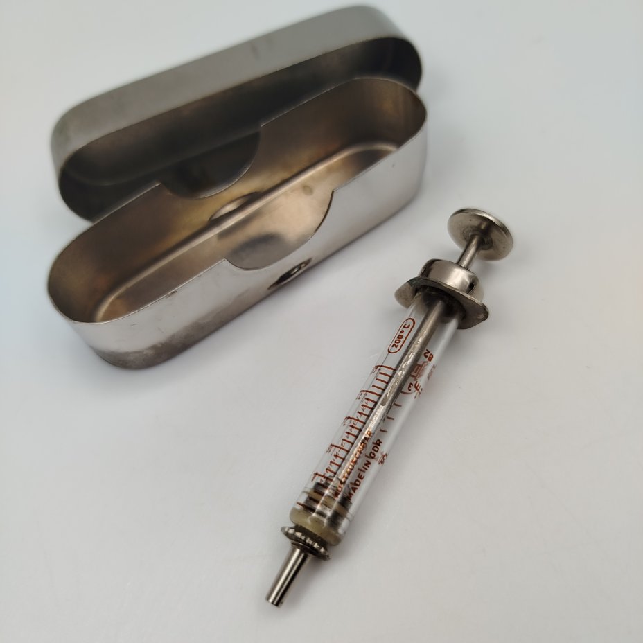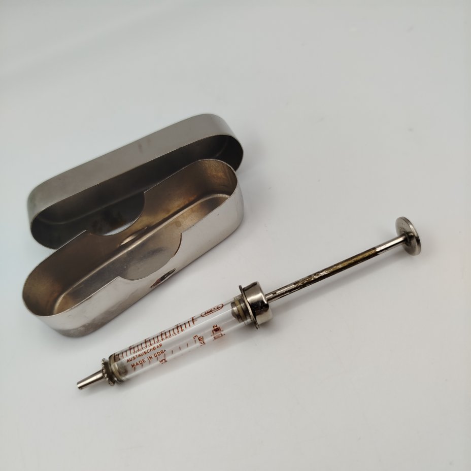 [Медицина] Шприц инсулиновый в футляре (в подборе), металл, стекло, ГДР, 1950-1970 гг.