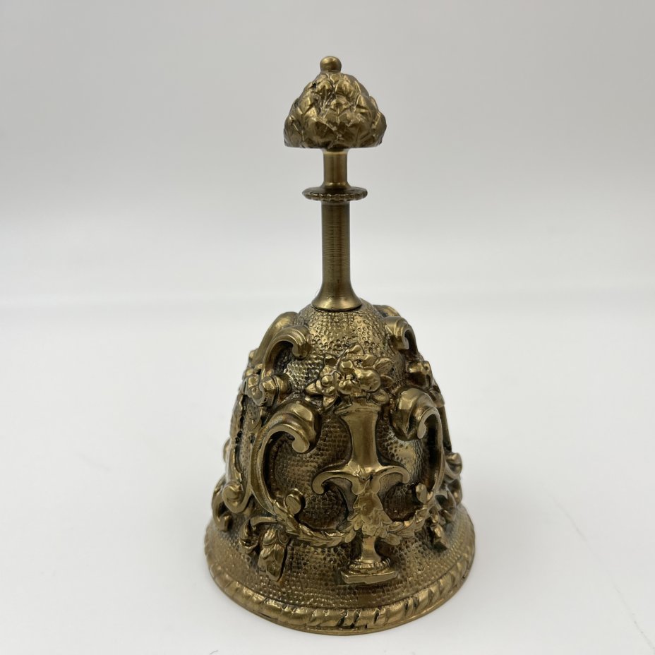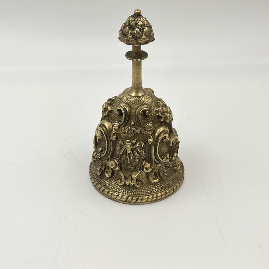 Колокольчик с растительным декором, изображением путти и воинов, бронза, Российская Федерация, 2010-2025 гг.