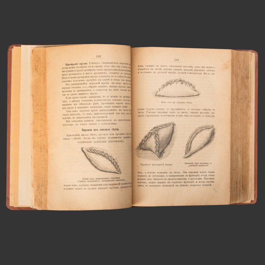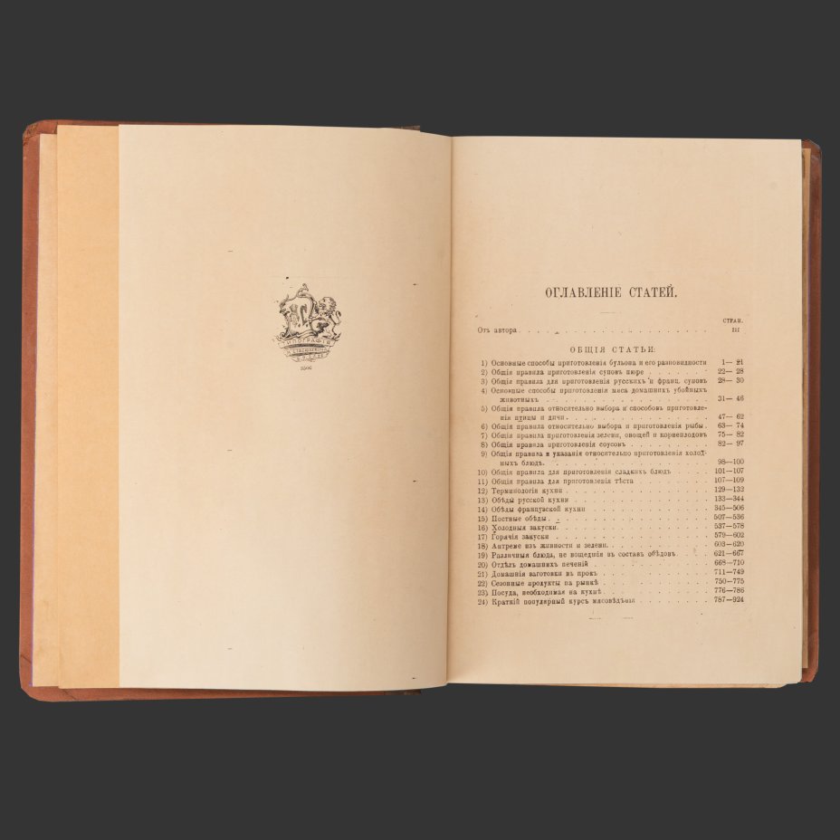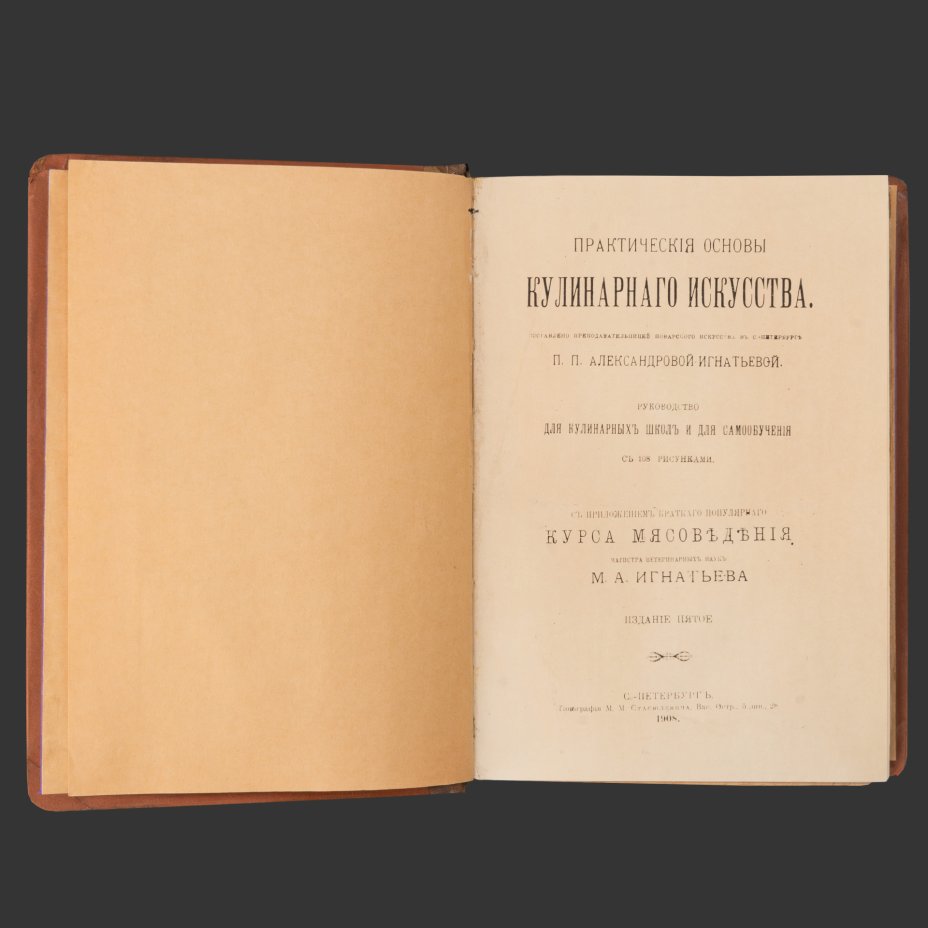 Книга "Практические основы кулинарного искусства. Руководство для кулинарных школ и для самообучения", П.П. Александрова-Игнатьева, бумага, печать, кожа, тиснение, Типография М.М. Стасюлевича, Российская империя, 1908 г.