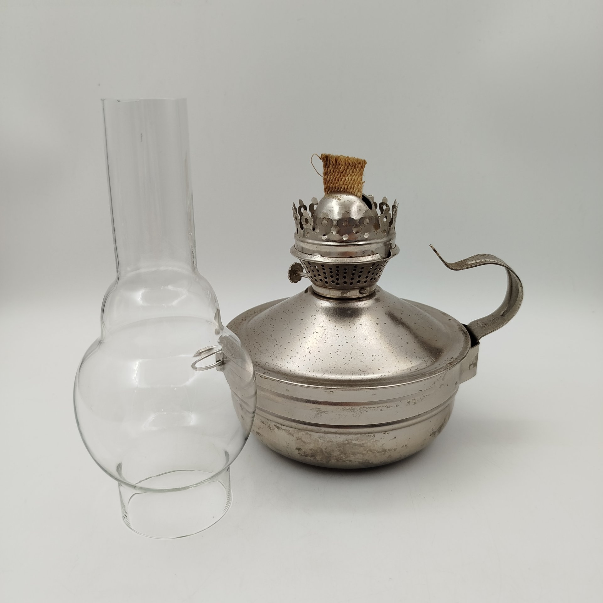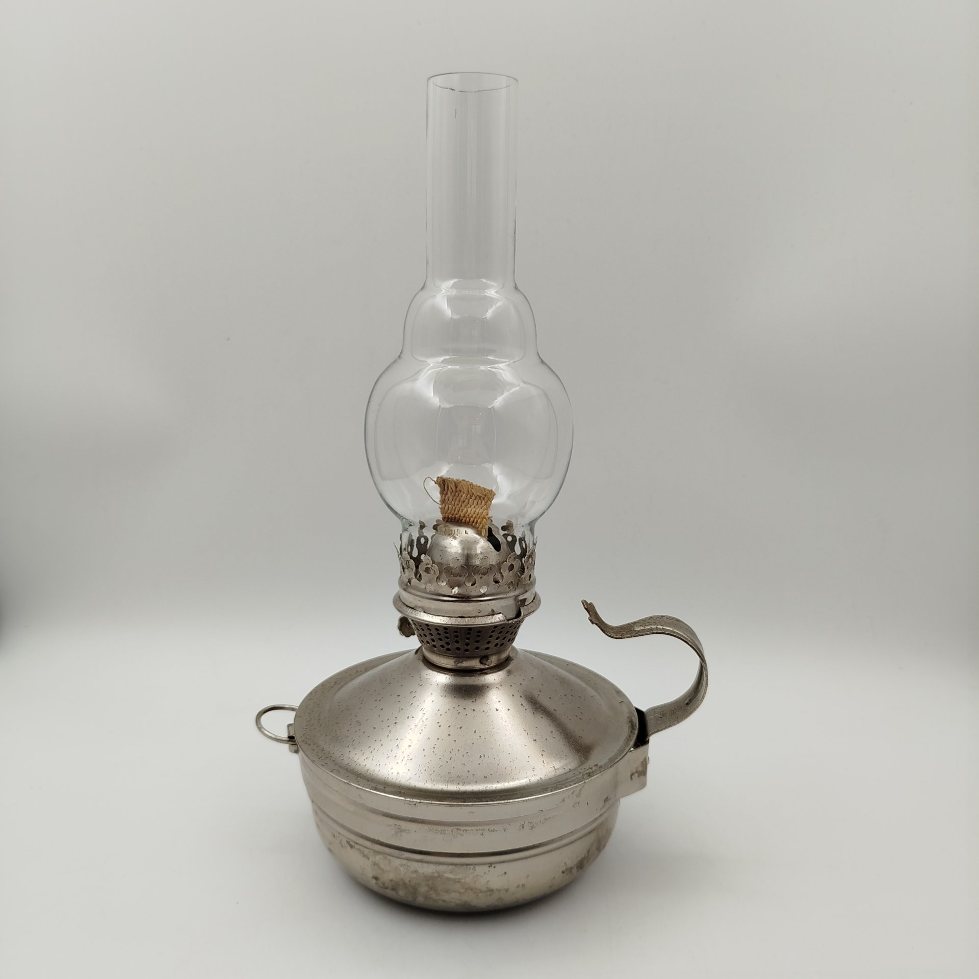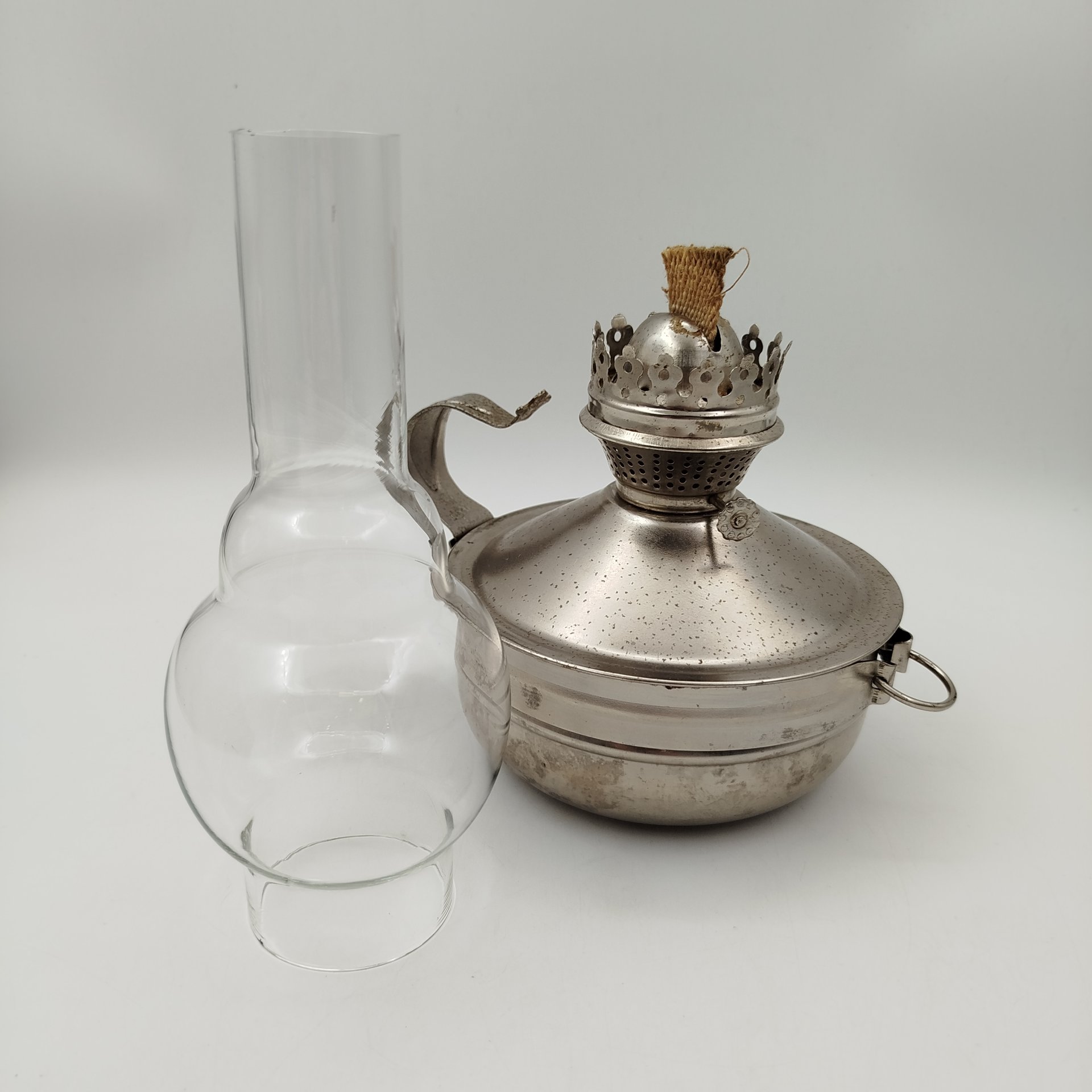 Лампа керосиновая, настольная, на высоком каменном основании с металлическими накладками в стиле модерн, стекло, сплав металлов, камень, Европа, 1900-1930 гг.
