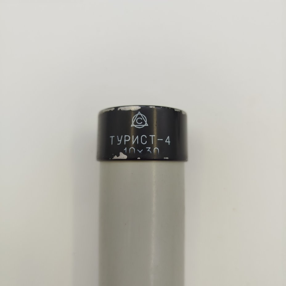 Труба зрительная "Турист-4" 10х30 в оригинальной коробке с документом, металл, стекло, пластик, Лыткаринский завод оптического стекла (ЛЗОС), СССР, 1984 г.