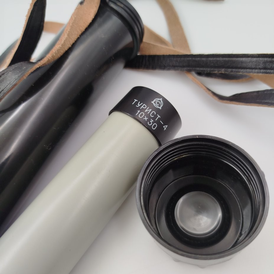 Подзорная труба "Турист 4" 10*30 в родном футляре, пластик, металл, стекло, кожа, Лыткаринский завод оптического стекла (ЛЗОС), СССР, 1970-1990 гг.